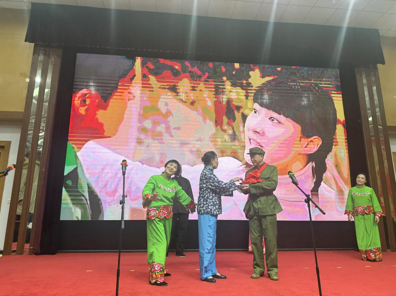 最后,領(lǐng)導(dǎo)和來賓們上臺(tái)與演職人員合影留念。大家在一片歡歌笑語聲中共同慶祝新中國成立75周年,歡度重陽節(jié)。