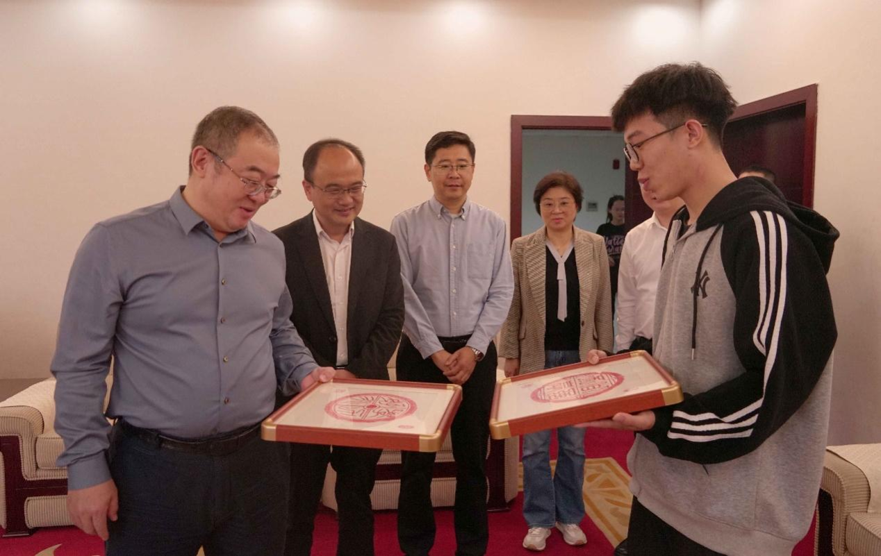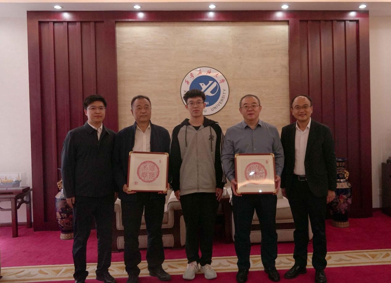 10月11日下午,學(xué)校建校73周年校慶日前夕,石油工程學(xué)院2023級(jí)學(xué)生、陜西省非物質(zhì)文化遺產(chǎn)——長(zhǎng)安瓦當(dāng)制作技藝?yán)^承人李瑞林同學(xué)向?qū)W校敬贈(zèng)親手制作的印有“好學(xué)力行,自強(qiáng)不息”校訓(xùn)的瓦當(dāng)拓片。校黨委書記常江、校黨委副書記程永清、副校長(zhǎng)趙健在鄠邑校區(qū)圖書館接待室接收贈(zèng)禮,并與李瑞林同學(xué)親切交流。