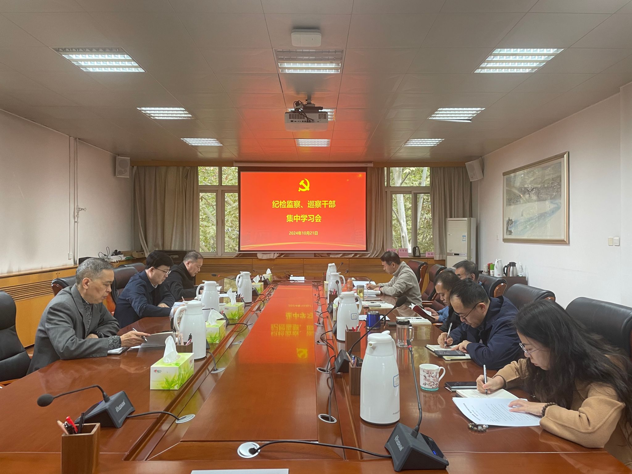 10月21日下午,紀(jì)檢巡察干部2024年第19次集中學(xué)習(xí)會在雁塔校區(qū)行政樓五樓會議室召開,紀(jì)檢監(jiān)察機構(gòu)、黨委巡察工作辦公室全體干部參加。會議由校黨委副書記、紀(jì)委書記、監(jiān)察專員王輝強主持。
