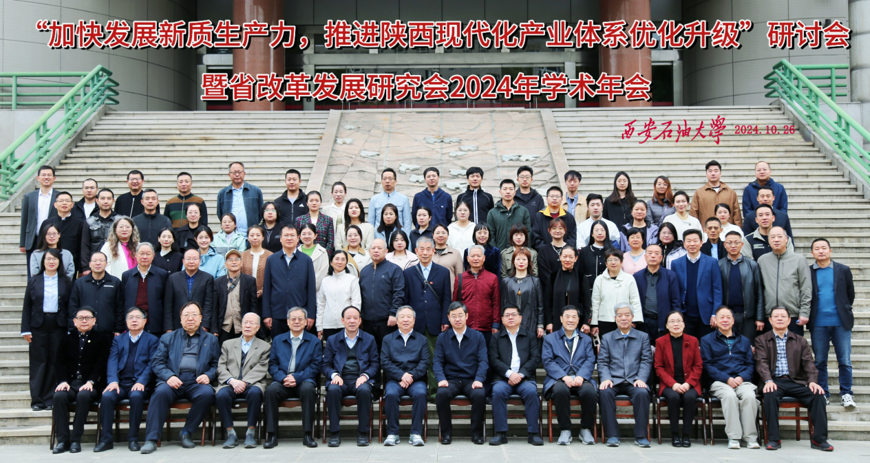 2024年10月26日,陜西省社科聯(lián)2024年學(xué)術(shù)活動(dòng)資助項(xiàng)目——“加快發(fā)展新質(zhì)生產(chǎn)力,推進(jìn)陜西現(xiàn)代化產(chǎn)業(yè)體系優(yōu)化升級(jí)”暨陜西省改革發(fā)展研究會(huì)2024年學(xué)術(shù)年會(huì)在西安石油大學(xué)召開。本次會(huì)議由陜西省社科聯(lián)主辦,陜西省改革發(fā)展研究會(huì)、西安石油大學(xué)經(jīng)濟(jì)管理學(xué)院和西安石油大學(xué)社科聯(lián)承辦。