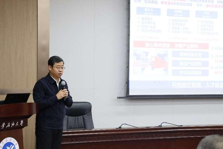 王進(jìn)富校長(zhǎng)以“加速四鏈融合,培育新質(zhì)生產(chǎn)力賦能油氣行業(yè)高質(zhì)量發(fā)展”為主題發(fā)表演講,深入剖析了油氣行業(yè)作為陜西省關(guān)鍵的能源支柱產(chǎn)業(yè),在新質(zhì)生產(chǎn)力發(fā)展背景下所面臨的轉(zhuǎn)型方向。他著重指出了四鏈融合(創(chuàng)新鏈、產(chǎn)業(yè)鏈、資金鏈、人才鏈)對(duì)于油氣行業(yè)培育新質(zhì)生產(chǎn)力、實(shí)現(xiàn)高質(zhì)量發(fā)展的重要性,并具體講解了在實(shí)際操作中如何加速四鏈融合,為油氣行業(yè)的可持續(xù)發(fā)展提供了新的思路和方法,使與會(huì)者對(duì)油氣行業(yè)的發(fā)展有了更深入的認(rèn)識(shí)和理解。