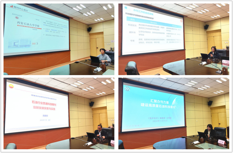 西安石油大學(xué)期刊中心副主任張馨、《油氣儲(chǔ)運(yùn)》雜志社社長(zhǎng)關(guān)中原、中國(guó)石油工程材料研究院標(biāo)準(zhǔn)信息與戰(zhàn)略研究所副所長(zhǎng)高建忠、《測(cè)井技術(shù)》編輯部副主任杜雪威分別以《西安石油大學(xué)學(xué)報(bào)(自然科學(xué)版)辦刊實(shí)踐與思考》《辦刊工作的底層邏輯與方法論》《匯聚辦刊力量 建設(shè)高質(zhì)量石油科技期刊》為題做了研討會(huì)主題報(bào)告。他們的報(bào)告主題鮮明,觀點(diǎn)突出,內(nèi)容翔實(shí),有助于激發(fā)創(chuàng)新潛力啟迪辦刊思維,提高編輯編審和專題策劃能力,獲得與會(huì)人員的一致肯定和高度稱贊。