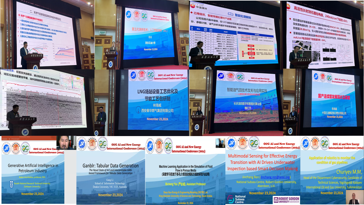 在會議交流階段,2024油氣AI與新能源國際會議以“油氣AI科技創(chuàng)新,能源共謀綠色發(fā)展”為主題,特邀來自中國、英國、澳大利亞、沙特阿拉伯、哈薩克斯坦、土庫曼斯坦等國家的13位知名專家學(xué)者,通過線下、線上,圍繞AI在油氣勘探、測井、地震、管道工程、地面工程、工程材料研究中的應(yīng)用以及地?zé)?、光伏、儲能等新能源領(lǐng)域做了精彩的學(xué)術(shù)報告,吸引了校內(nèi)外200余名師生參加,為理解油氣AI與新能源技術(shù)現(xiàn)狀和發(fā)展趨勢提供了寶貴機會。