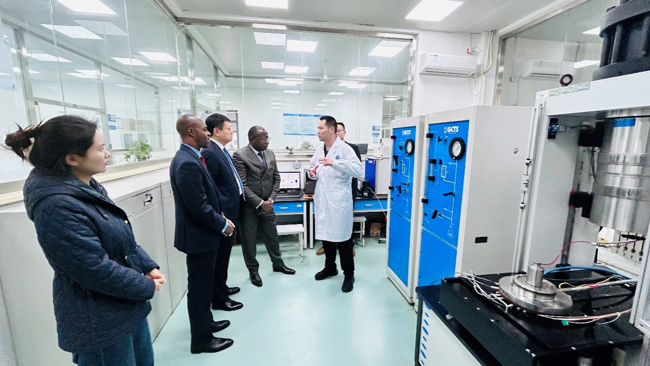 會后,雅克·尼昂加大使一行參觀了我校西部低滲—特低滲透油田開發(fā)與治理教育部工程研究中心、陜西省油氣成藏地質(zhì)學(xué)重點實驗室、現(xiàn)代分析檢測中心等重點實驗室,對我校在油氣領(lǐng)域取得的科研成果表示贊賞,希望未來繼續(xù)推進(jìn)剛果(布)與我校在石油天然氣領(lǐng)域的科研合作。