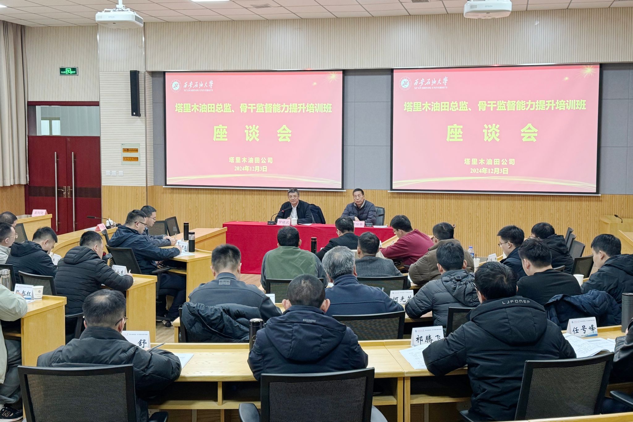 12月2日上午,塔里木油田總監(jiān)、骨干監(jiān)督能力提升培訓(xùn)班在我校明德校區(qū)順利開班。 12月3日下午,塔里木油田公司黨工委常委、副總經(jīng)理、總工程師、安全總監(jiān)羅緒武來校與參訓(xùn)學(xué)員開展座談會(huì)。
