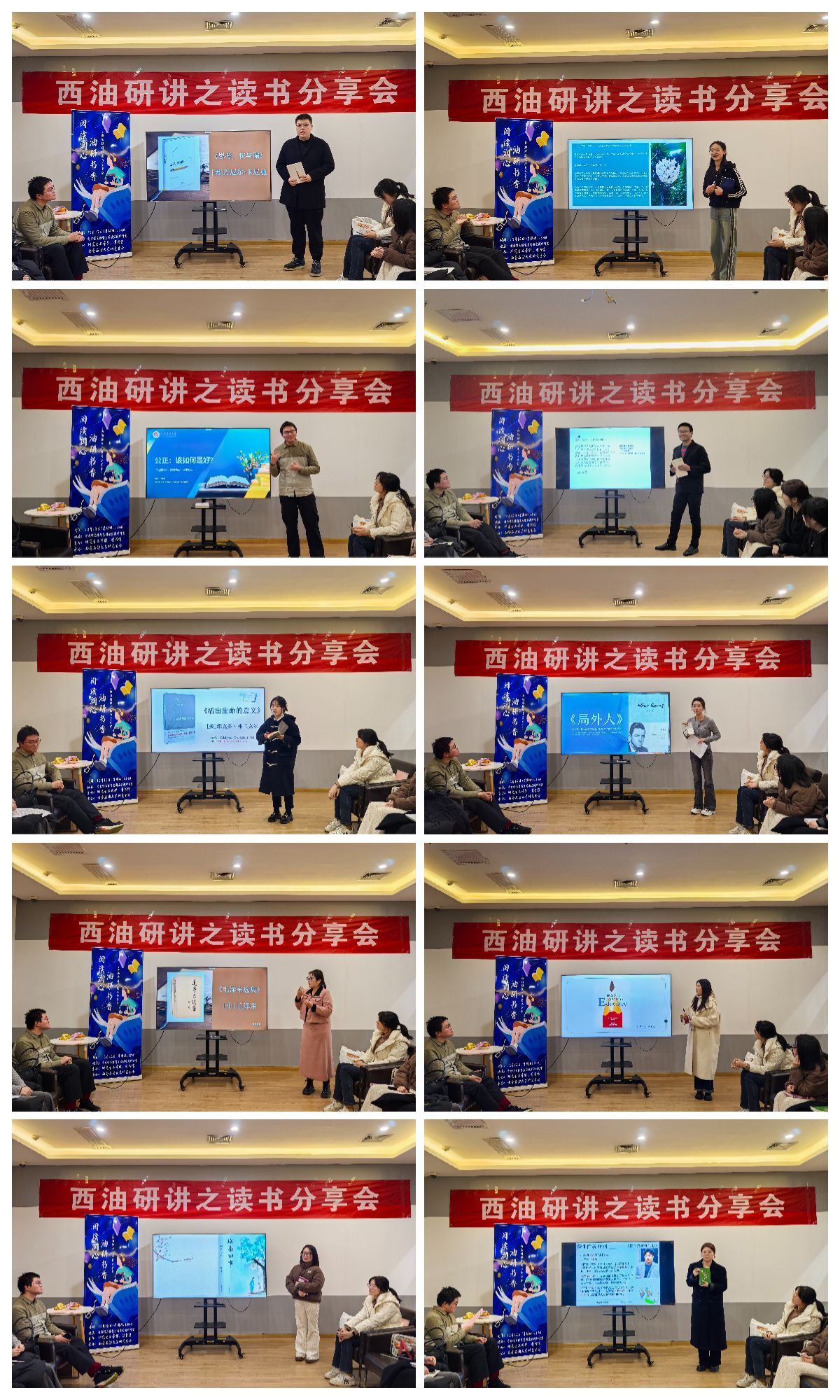 “西油研講”是研究生工作部推出的一項研究生創(chuàng)新教育平臺,“研講”將聚焦研究生發(fā)展需求,精心設(shè)計服務(wù)菜單和分享內(nèi)容,開展涵蓋思政教育、學術(shù)科研、創(chuàng)新實踐、校園生活、職業(yè)規(guī)劃和心理健康等各個方面,旨在激勵研究生自強不息、砥礪奮進、刻苦鉆研,提升知識創(chuàng)新和實踐創(chuàng)新能力。此次讀書分享會是“西油研講”首期活動,吸引了眾多研究生的積極參與,展現(xiàn)了我校研究生積極向上的精神風貌和深厚的學術(shù)底蘊。