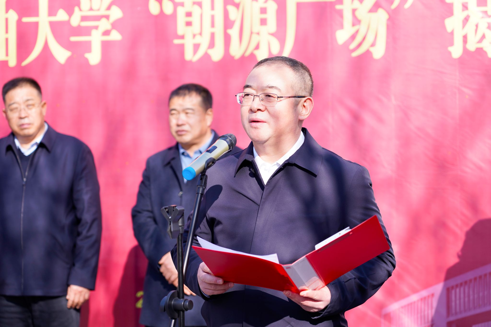 盧宇介紹了公司近年來(lái)對(duì)教育事業(yè)的關(guān)注與支持情況。他談到,助力教育是企業(yè)應(yīng)盡的社會(huì)責(zé)任,長(zhǎng)期以來(lái),朝源礦業(yè)在謀求自身發(fā)展的同時(shí),始終牢記企業(yè)的責(zé)任與擔(dān)當(dāng),希望通過(guò)捐贈(zèng)幫助學(xué)校改善教學(xué)條件,為師生們創(chuàng)造更加舒適宜人的學(xué)習(xí)與工作環(huán)境,為學(xué)校培育優(yōu)秀人才貢獻(xiàn)一份力量。他表示,期望“朝源廣場(chǎng)”能夠成為雙方友誼與合作的永恒見(jiàn)證,并以此為契機(jī),進(jìn)一步與學(xué)校在實(shí)踐基地建設(shè)、科技成果轉(zhuǎn)化等方面開(kāi)展更多深度合作,實(shí)現(xiàn)企業(yè)與學(xué)校的互利共贏、協(xié)同發(fā)展。