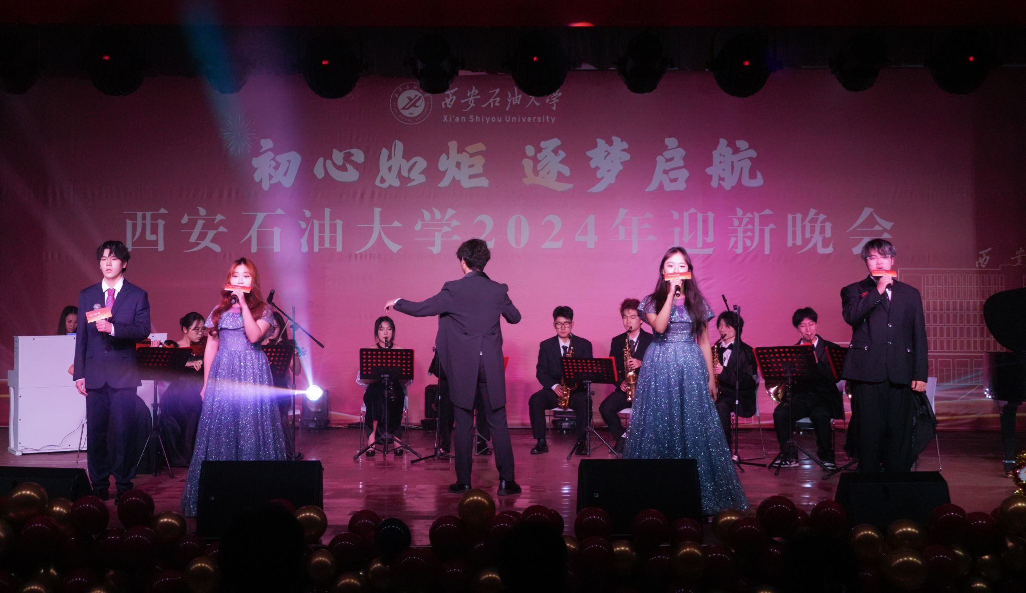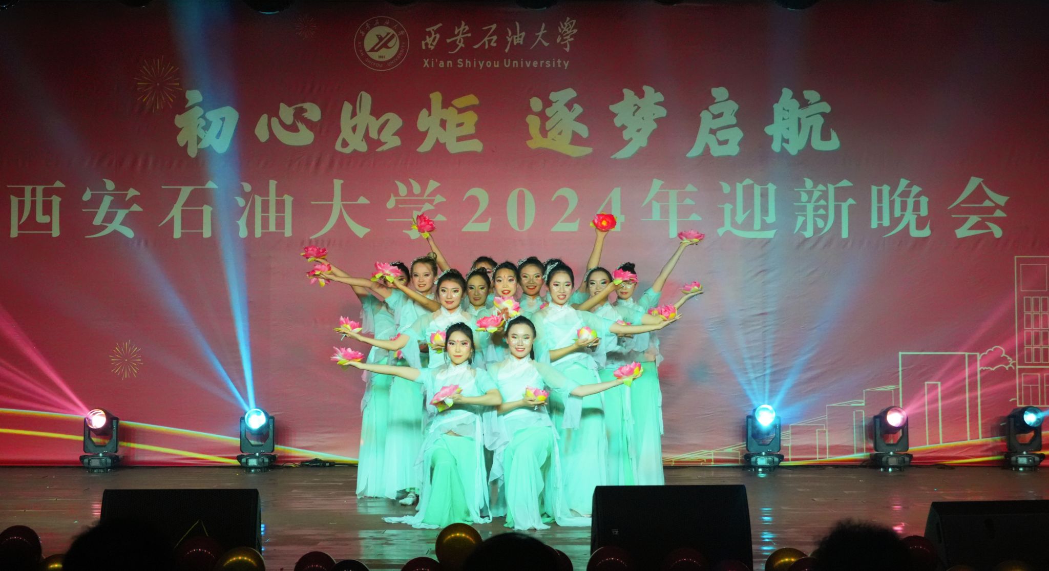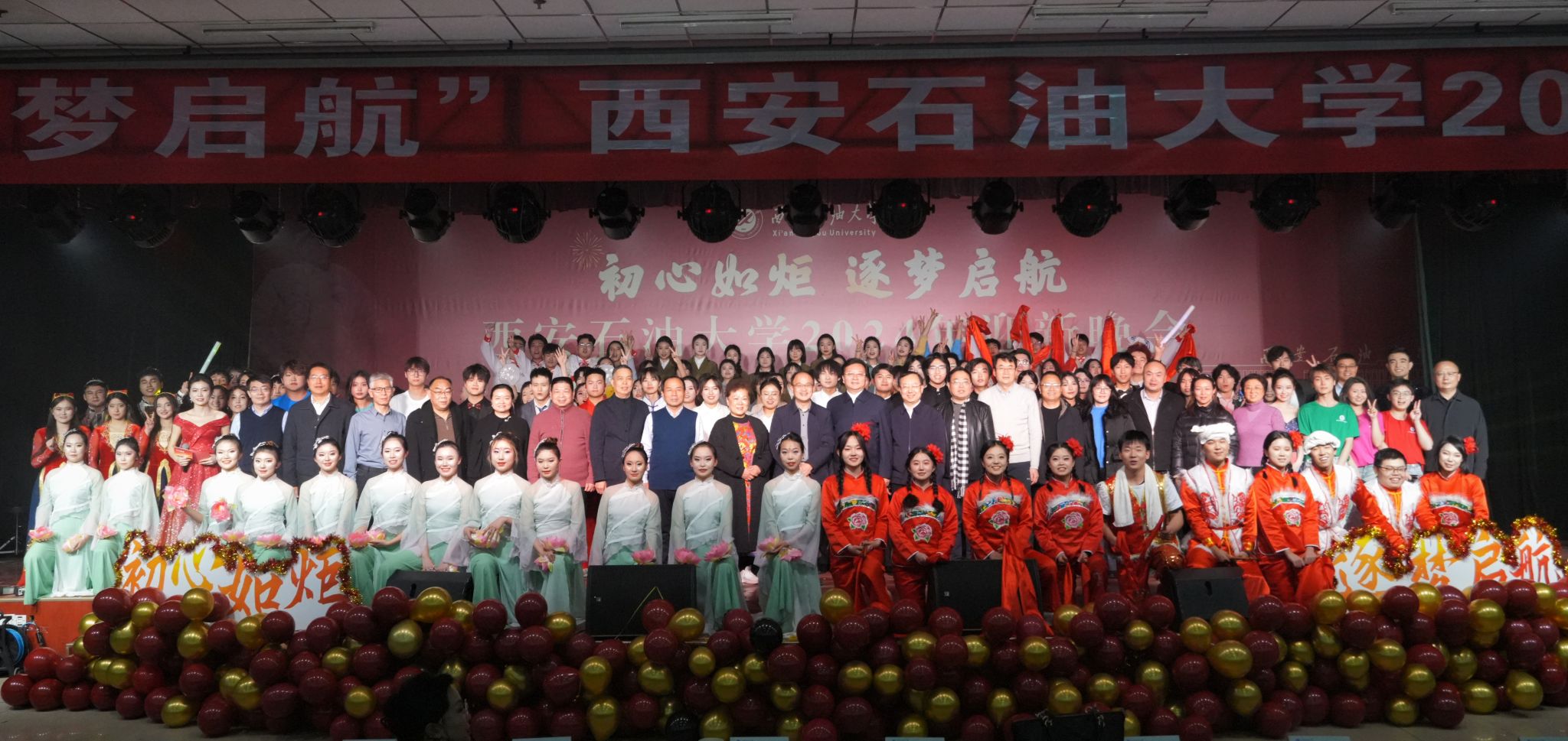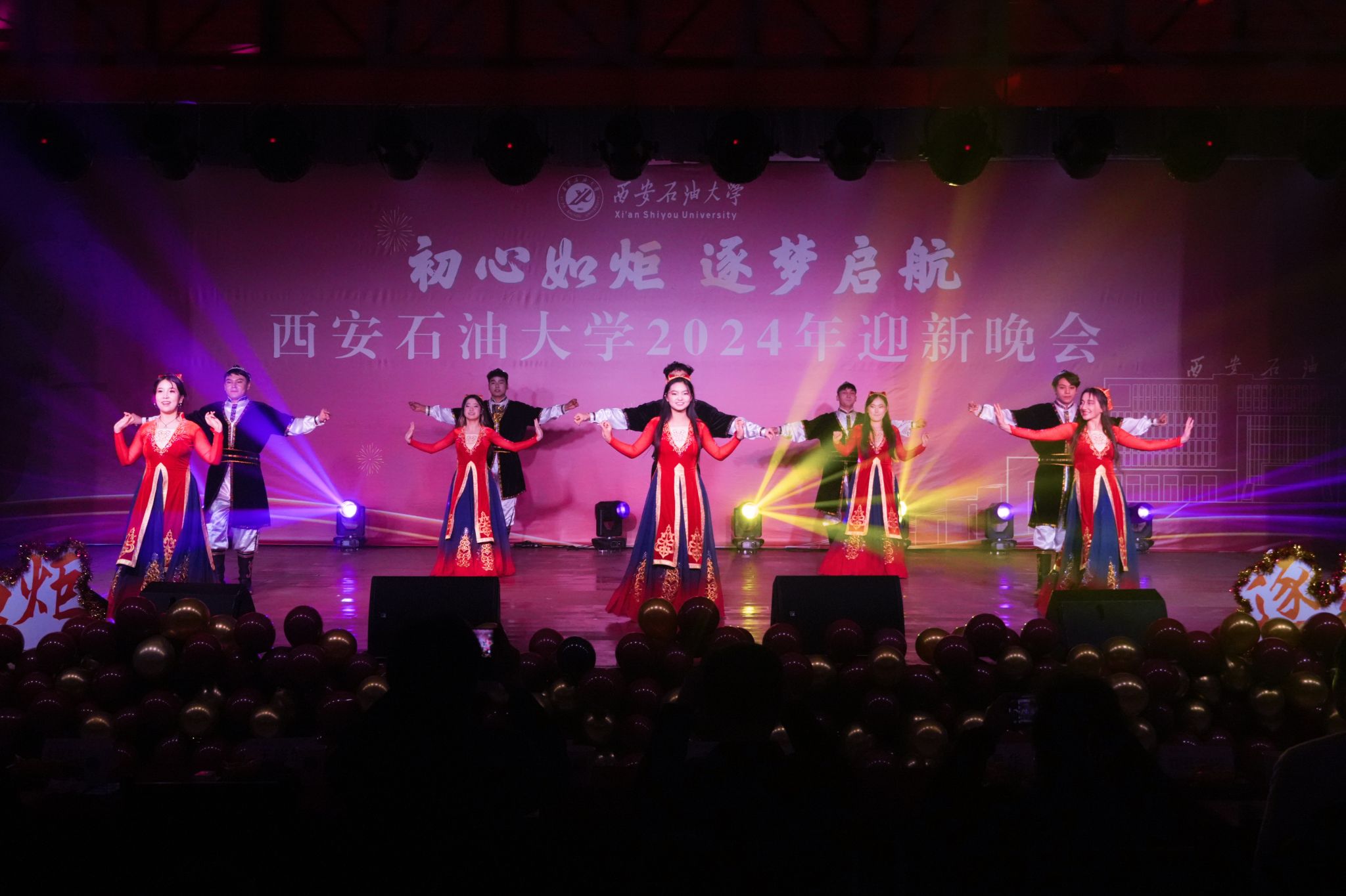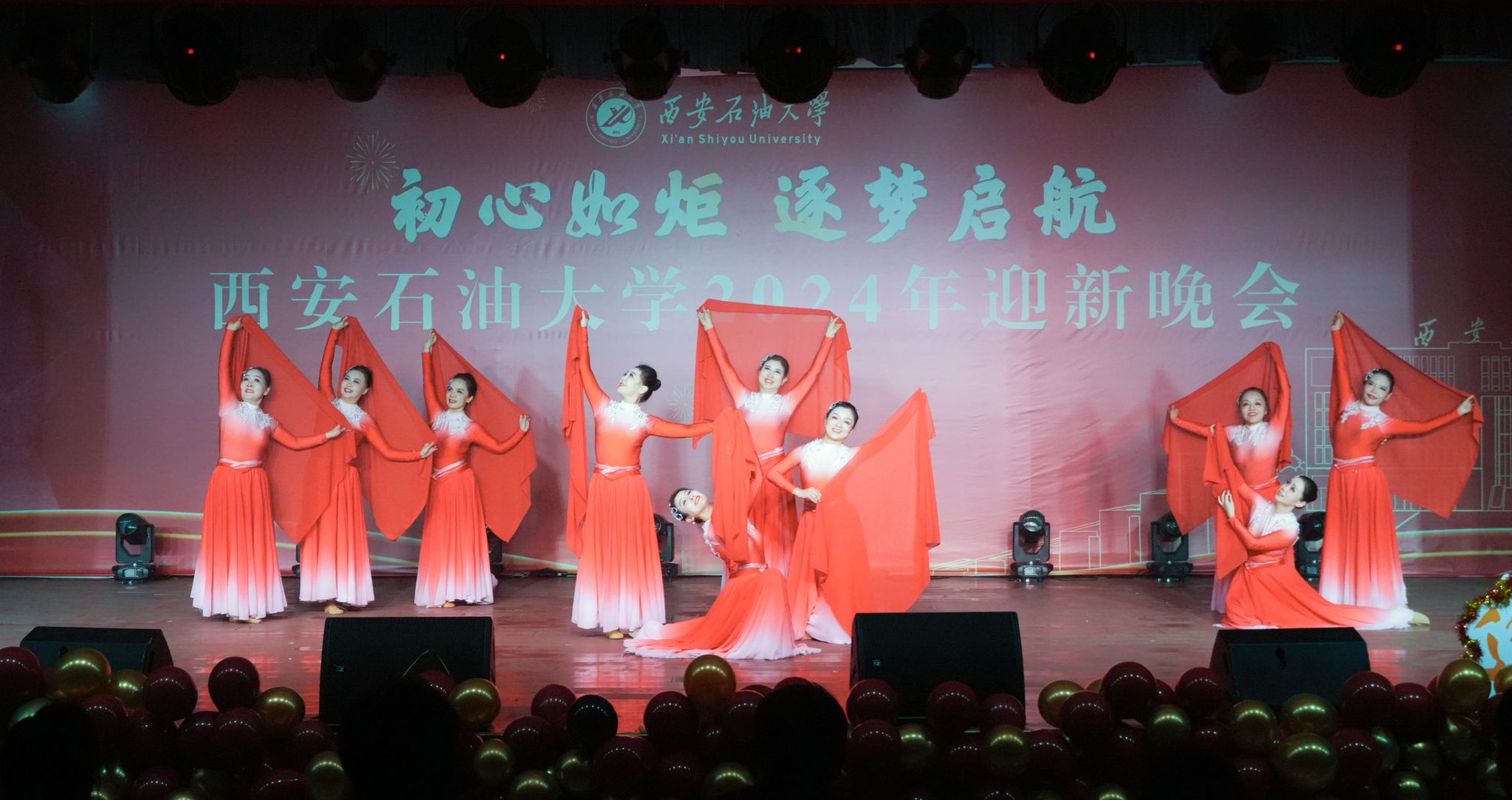 12月30日晚,“初心如炬 逐夢啟航”西安石油大學(xué)2024年迎新晚會在鄠邑校區(qū)騰輝大學(xué)生活動中心舉辦。副校長趙健出席晚會,學(xué)校相關(guān)職能部門、院(系)負(fù)責(zé)同志,教師代表,學(xué)生代表等800余人觀看晚會。