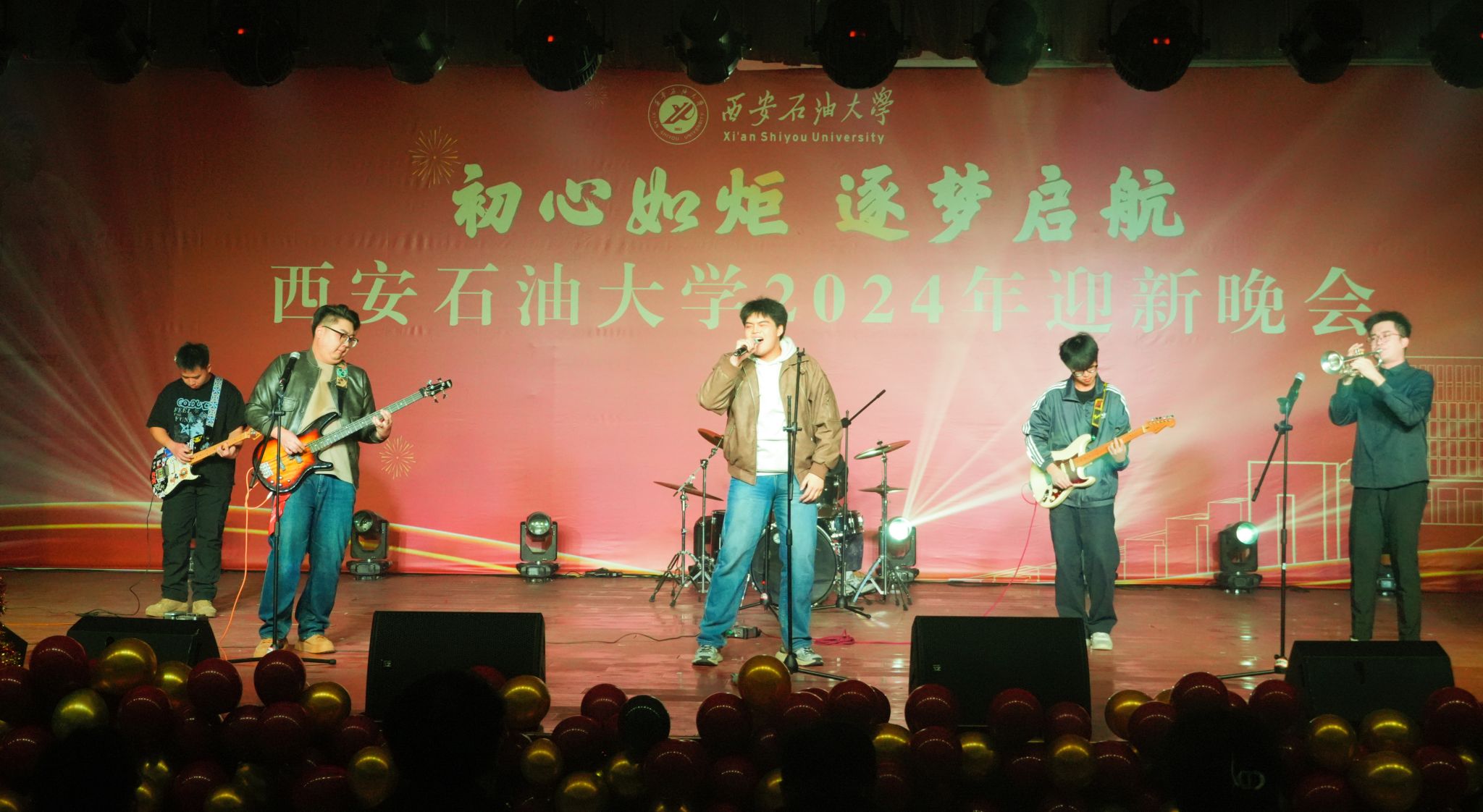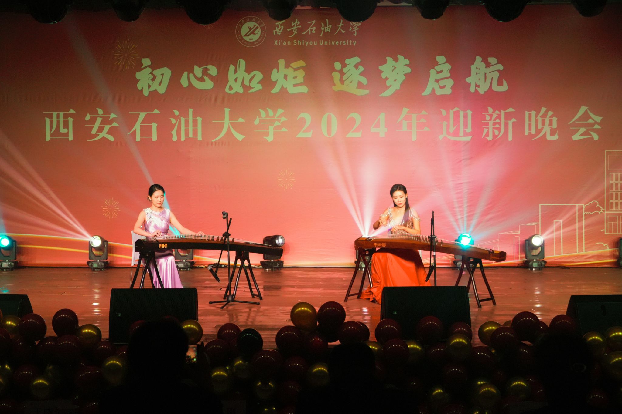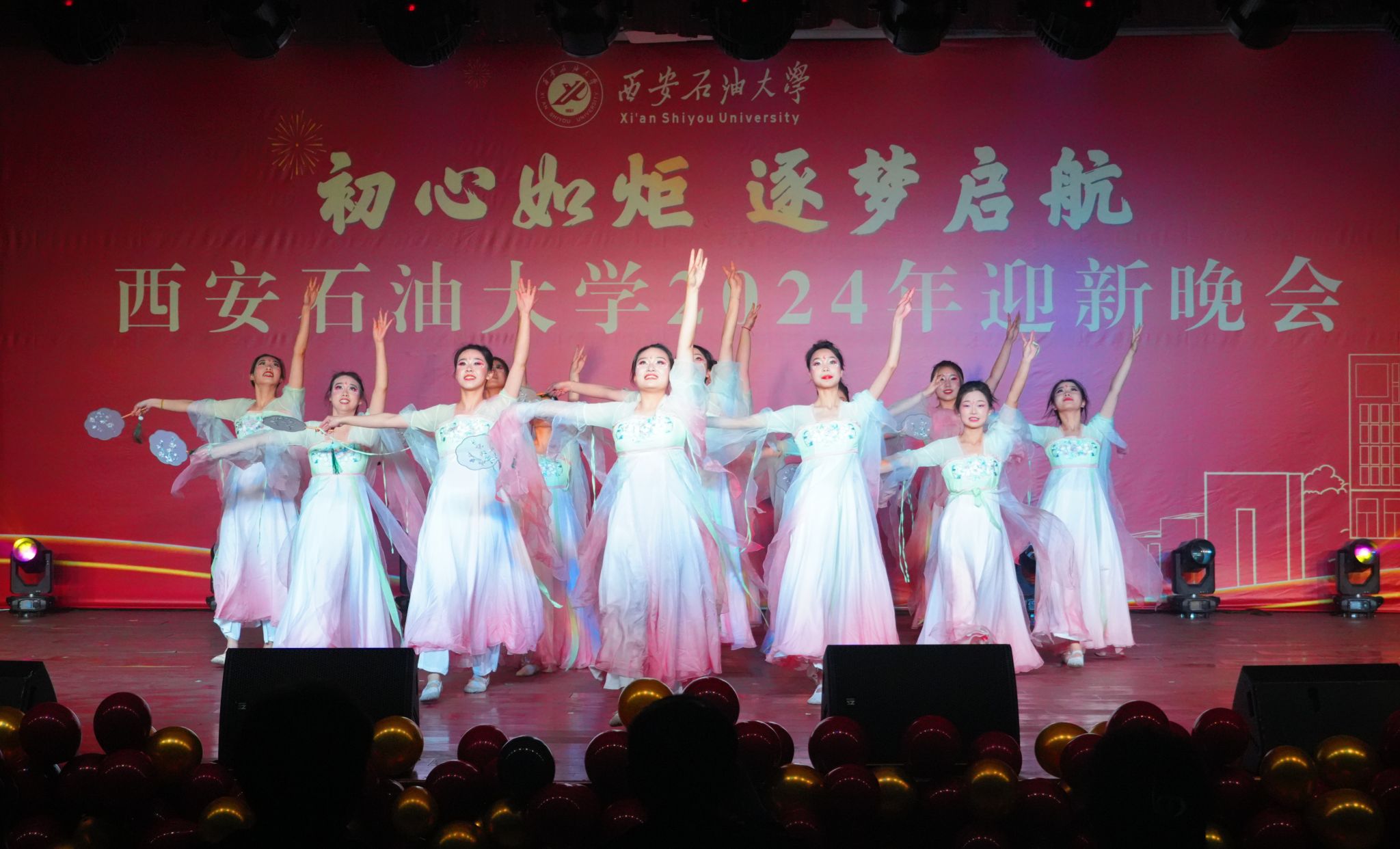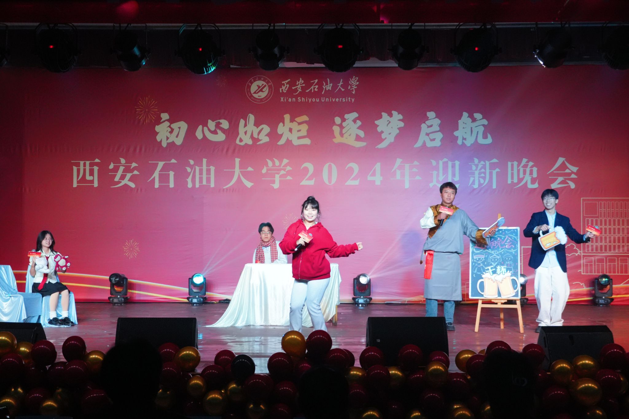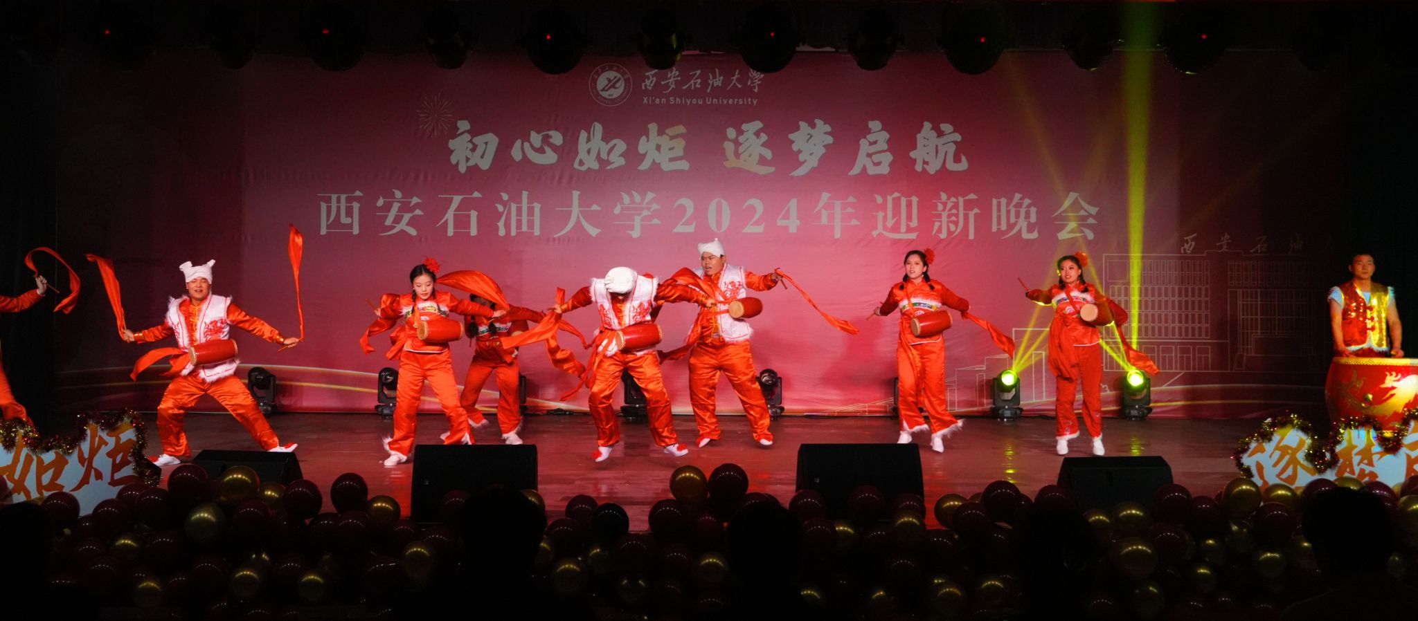 12月30日晚,“初心如炬 逐夢啟航”西安石油大學(xué)2024年迎新晚會在鄠邑校區(qū)騰輝大學(xué)生活動中心舉辦。副校長趙健出席晚會,學(xué)校相關(guān)職能部門、院(系)負(fù)責(zé)同志,教師代表,學(xué)生代表等800余人觀看晚會。