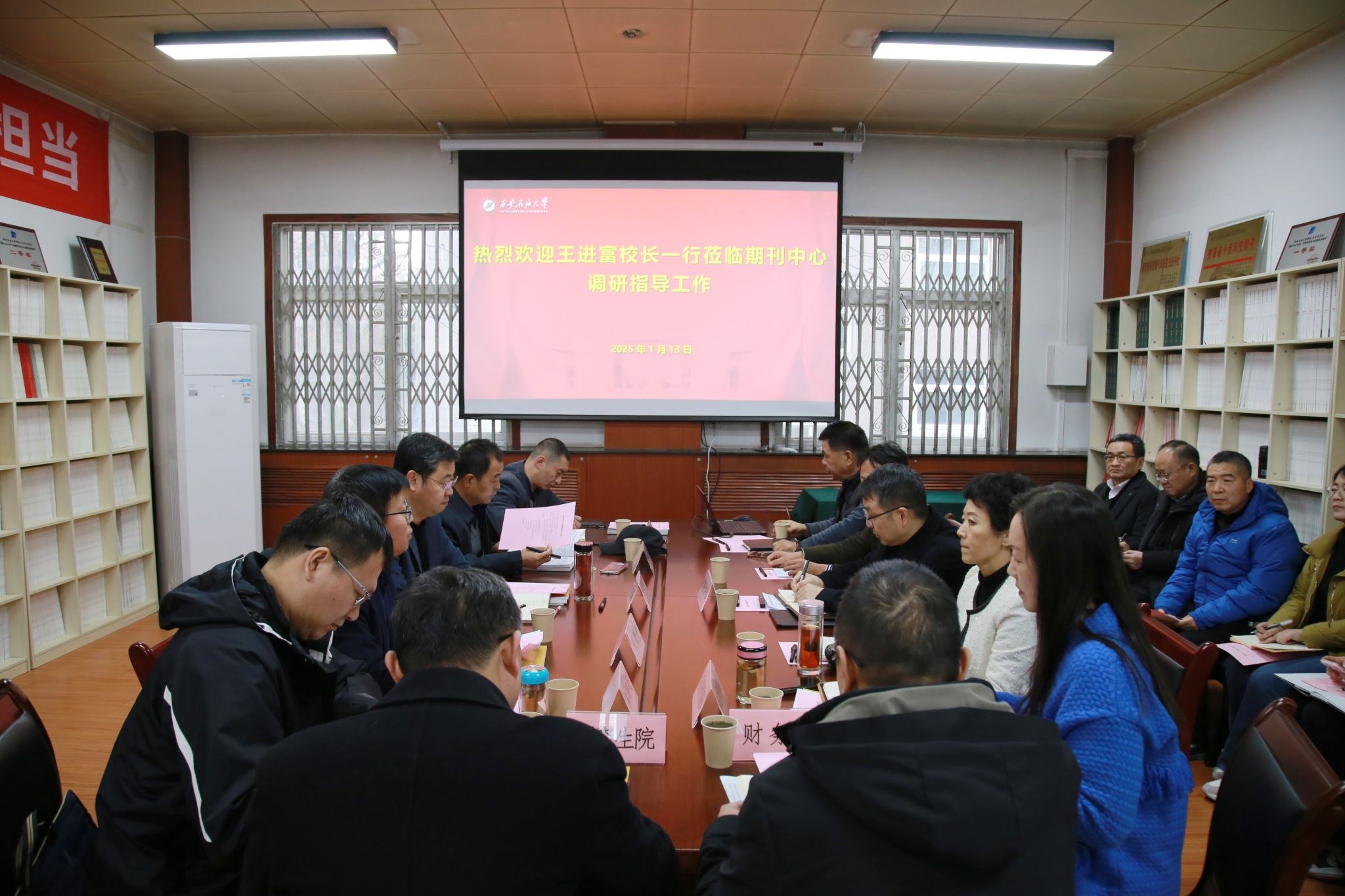 1月13日下午,校長王進(jìn)富帶隊赴期刊中心進(jìn)行工作調(diào)研,圍繞期刊高質(zhì)量發(fā)展開展座談交流。校黨委副書記程永清出席,副校長張驍勇主持座談會。人事處、科研處、研究生院(學(xué)科建設(shè)辦公室)、財務(wù)處、資產(chǎn)經(jīng)營公司等部門負(fù)責(zé)人及期刊中心相關(guān)人員參加上述活動。