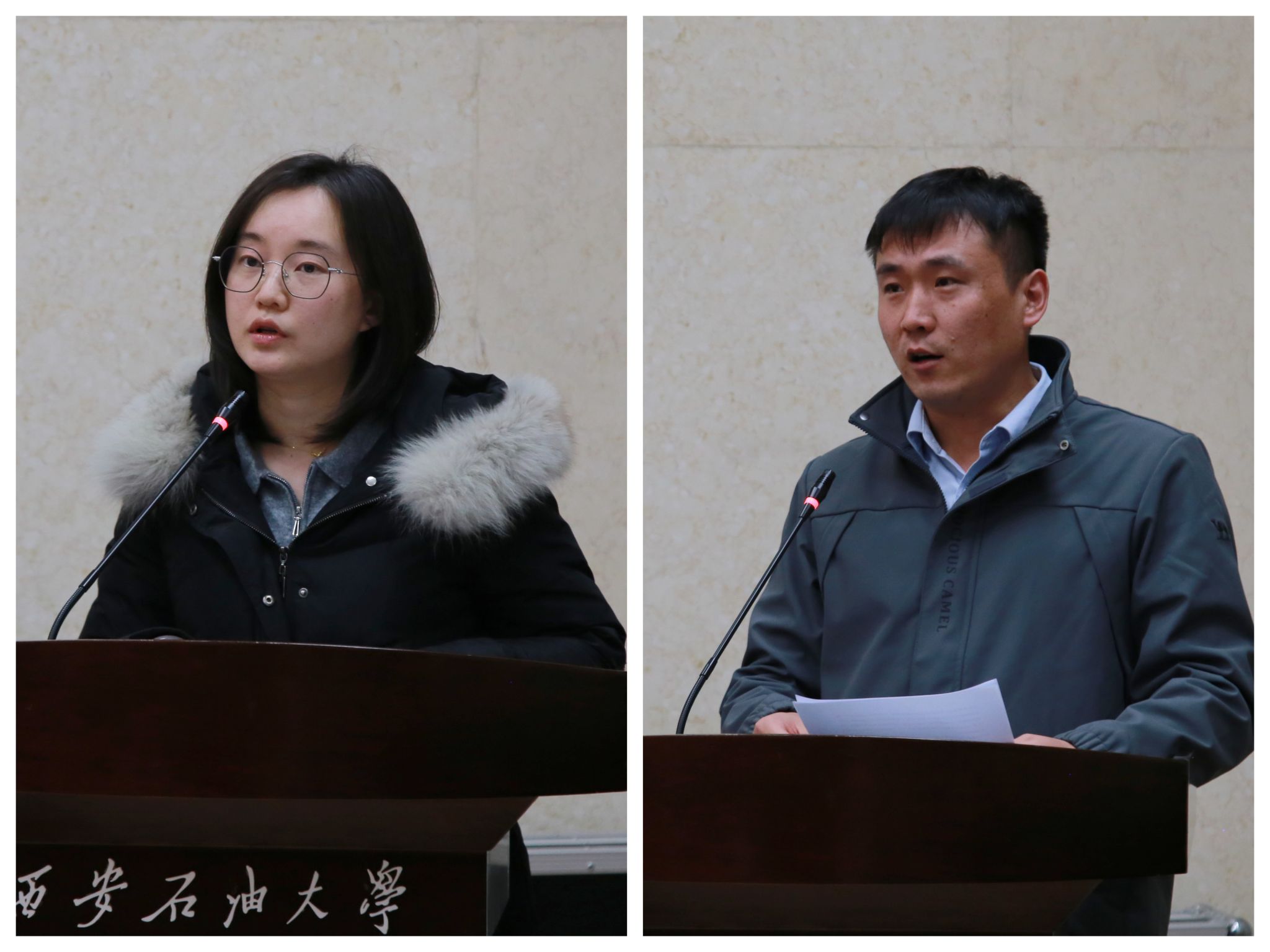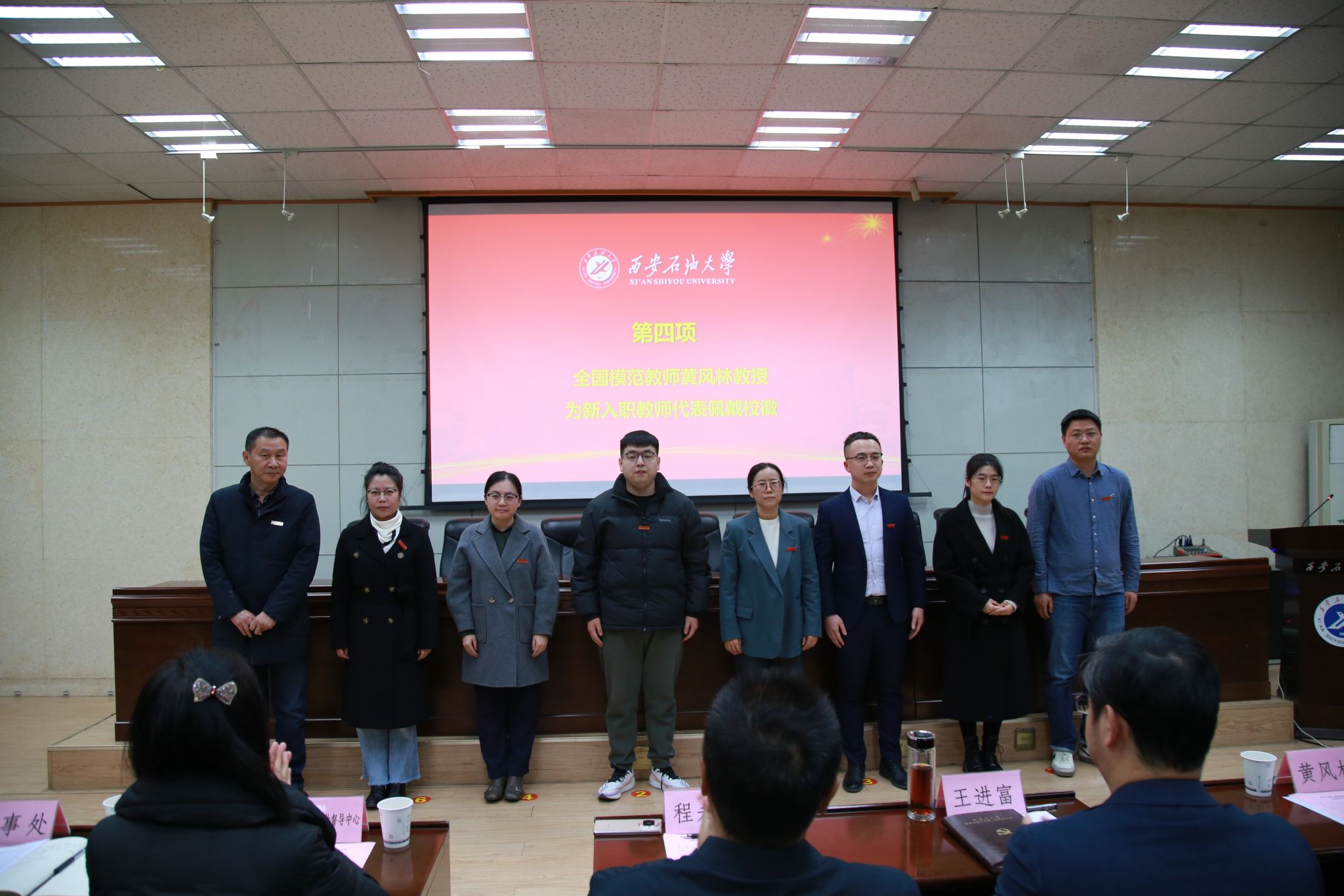 黃風林教授為新入職教師代表佩戴?;?,傳遞出一份深深的囑托,也象征著教育精神的薪火相傳。青年教師代表、石油工程學院副教授劉婭菲分享了個人角色轉(zhuǎn)換、職業(yè)發(fā)展和教學科研工作等方面心路歷程;新入職教師代表、地球科學與工程學院喬建偉老師在交流發(fā)言中表達了為建設高水平教學研究型大學做貢獻的決心和信心。