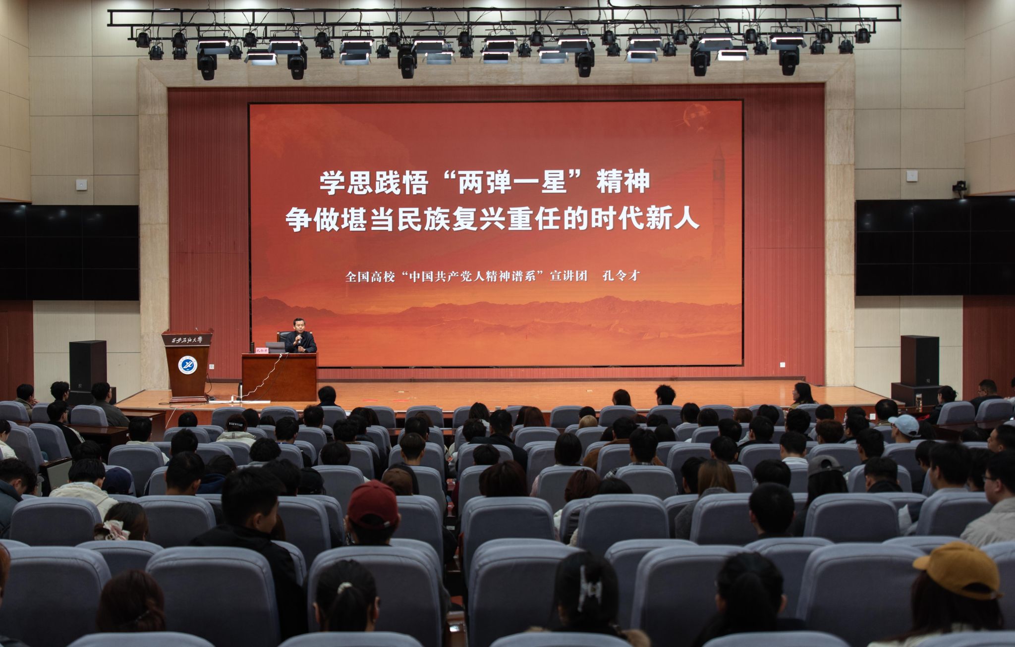 報告會上,孔令才將軍通過大量的史實和人物故事,帶領師生重回“兩彈一星”事業(yè)發(fā)展的崢嶸歲月,深刻感悟以“熱愛祖國、無私奉獻,自力更生、艱苦奮斗,大力協(xié)同、勇于登攀”為內核的“兩彈一星”精神。