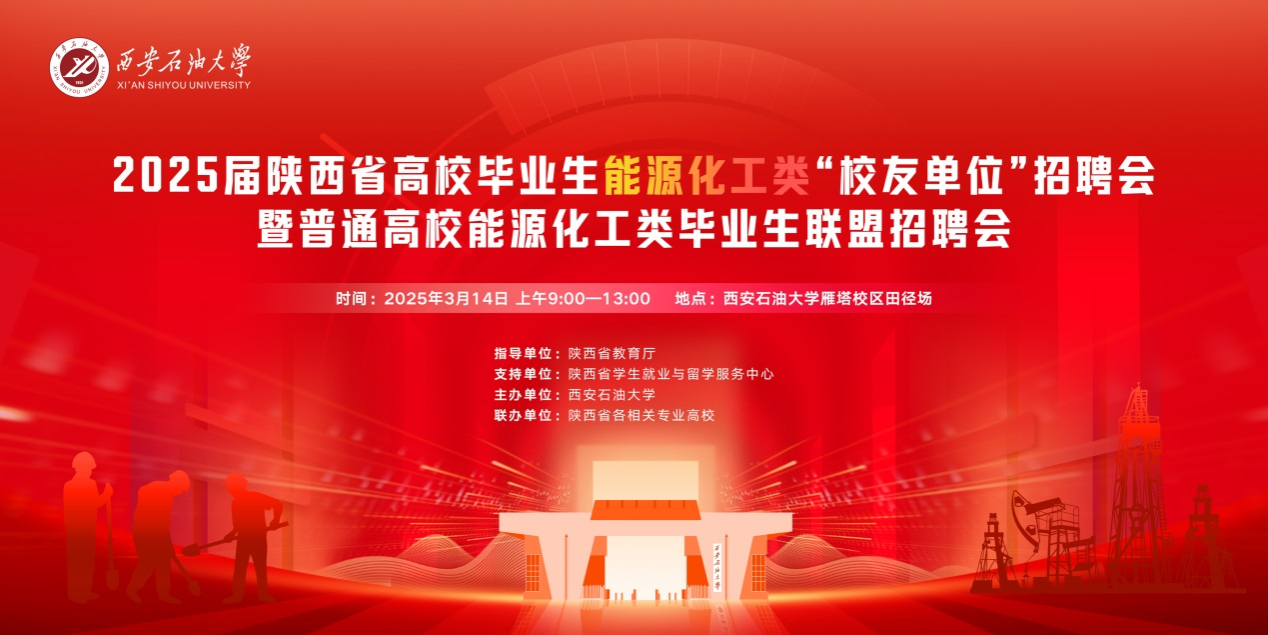 3月14日,由陜西省人力資源和社會保障廳、陜西教育廳指導,中國西安市人才市場管理委員會辦公室(陜西省人才交流服務中心)、陜西省學生就業(yè)與留學服務中心支持,西安石油大學主辦,陜西省能源化工類相關專業(yè)高校聯(lián)辦的職引未來·全國城市聯(lián)合招聘高校畢業(yè)生暨2025屆陜西省高校畢業(yè)生能源化工類“校友單位”招聘會在我校雁塔校區(qū)成功舉辦。省委教育工委委員、省教育廳副廳長吳振磊一行來校指導調研就業(yè)工作。校長王進富、副校長趙健陪同考察。