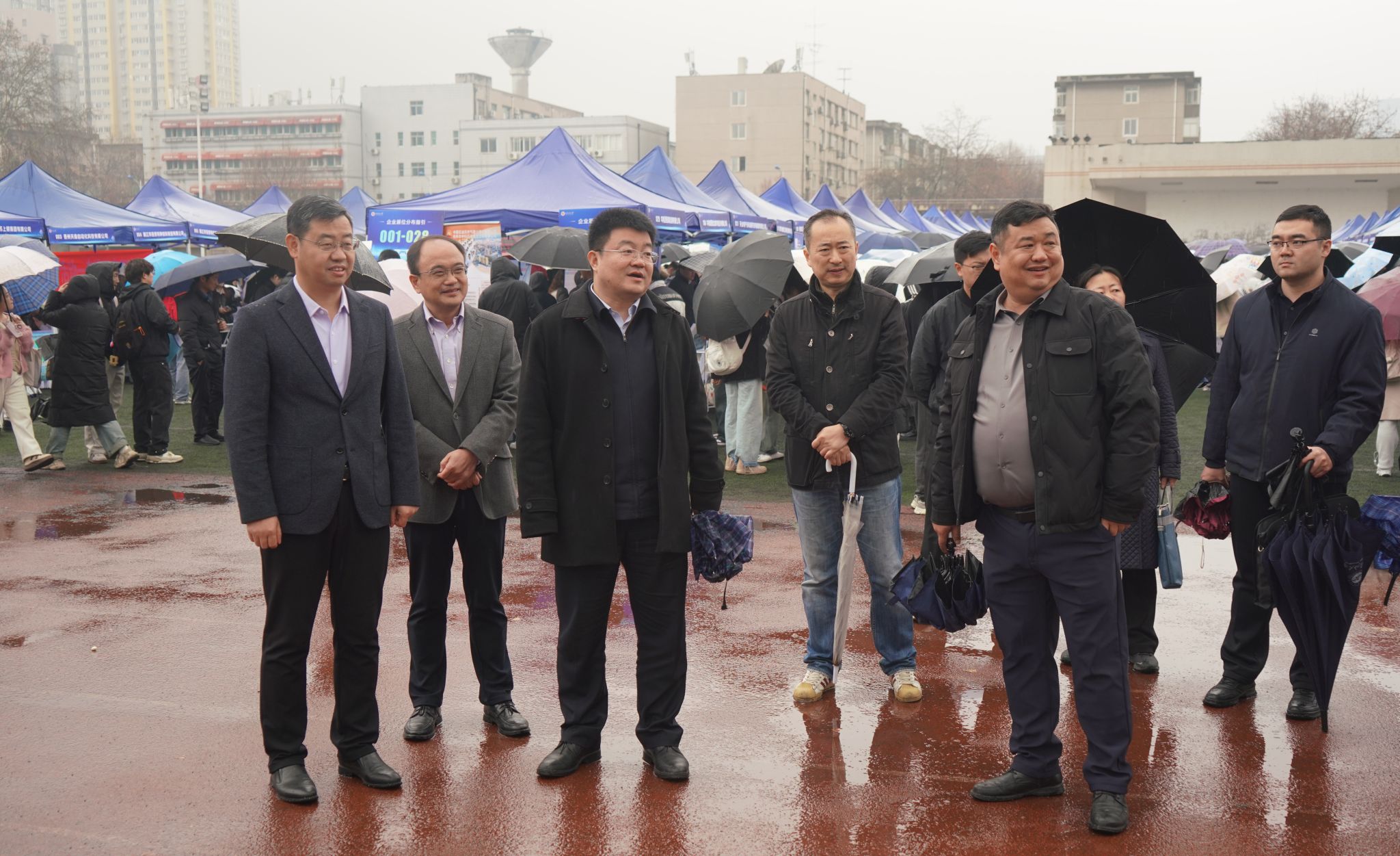吳振磊一行深入招聘會場,認真聽取了學校關于招聘會籌備、會議組織、會務服務的工作匯報,詳細了解了本次會議參會單位及畢業(yè)生基本情況。現(xiàn)場與企業(yè)招聘代表、畢業(yè)生、二級院(系)學生工作主要負責人、我校就業(yè)工作相關負責同志進行了深入交流,就做好高校畢業(yè)生就業(yè)工作提出幾點建議:一是要抓主要矛盾,積極發(fā)揮校園招聘“主渠道”作用,促進市場催化就業(yè);二是要主動作為,深入開展“訪企拓崗促就業(yè)”專項行動,提高走訪實效和崗位利用率;三是要健全就業(yè)服務體系,全力搭建畢業(yè)生與用人單位供需對接,破解“人才-崗位”的結構性矛盾;四是要關注特殊困難群體,健全就業(yè)幫扶機制,實行“一人一檔”“一人一策”,發(fā)揮校友單位招聘作用。