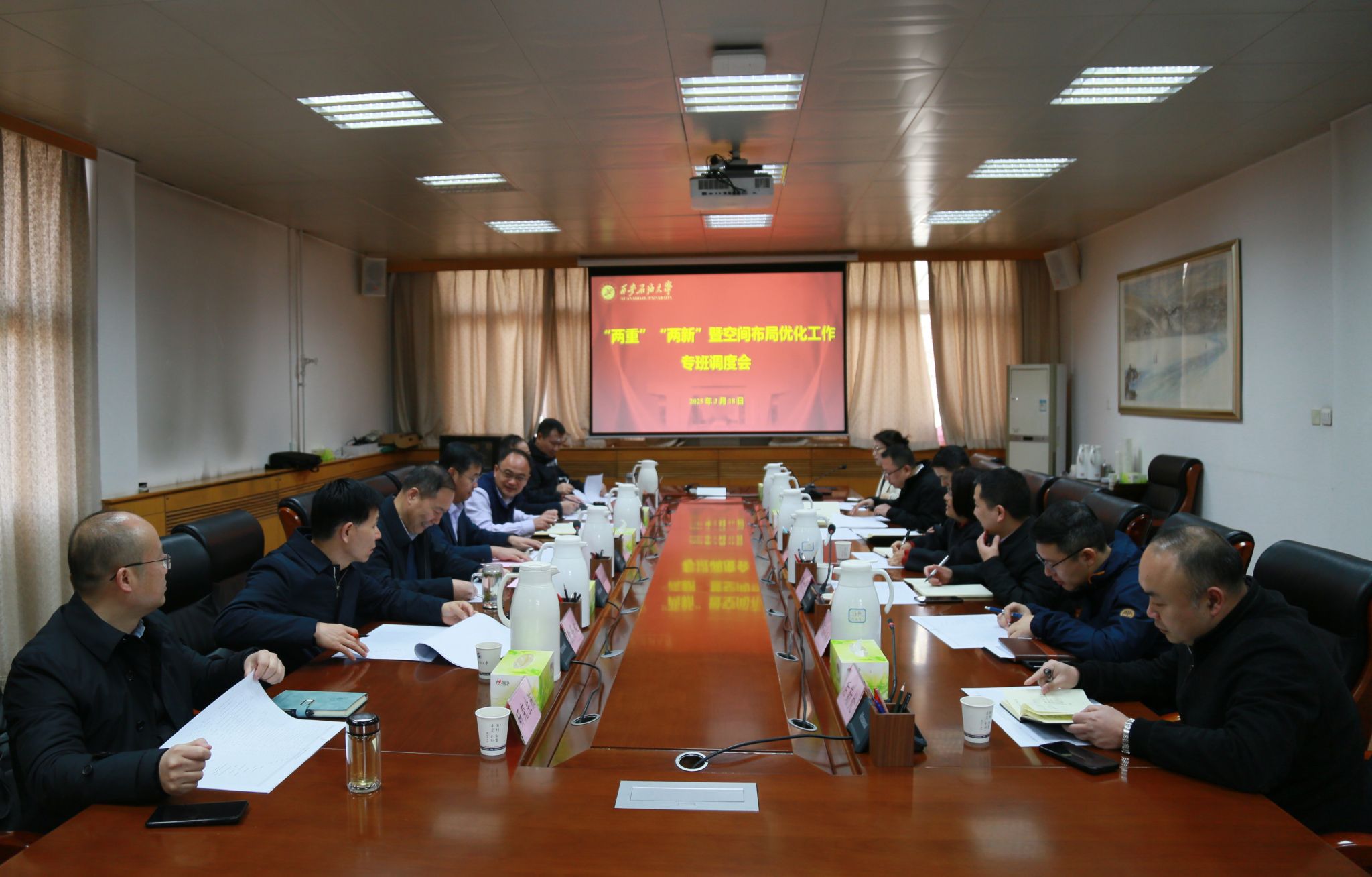 3月18日上午,學?!皟芍亍薄皟尚隆濒呖臻g布局優(yōu)化工作專班調(diào)度會在雁塔校區(qū)辦公樓五樓會議室召開。校長王進富出席會議,黨委辦公室(校長辦公室)、發(fā)展規(guī)劃處、教務處、科研處、研究生院、財務處、審計處、國有資產(chǎn)處、采購招標處、基建處、后勤處、音樂系等單位主要負責人參加會議。會議由副校長趙健主持。