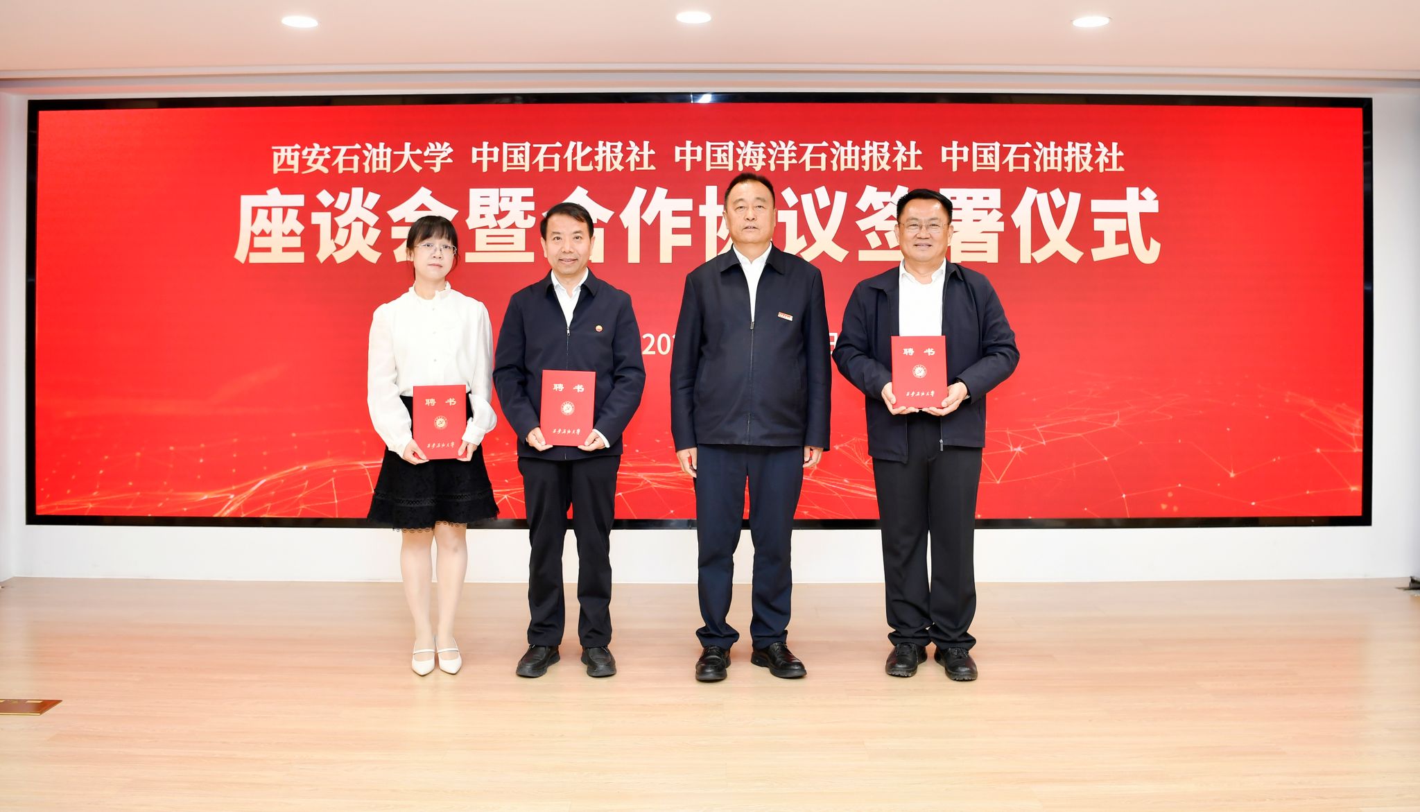 4月10日上午,西安石油大學(xué)與中國(guó)石油報(bào)、中國(guó)石化報(bào)、中國(guó)海洋石油報(bào)合作協(xié)議在京簽署。我校黨委書記常江,《中國(guó)石油報(bào)》社有限公司(中國(guó)石油融媒體中心)執(zhí)行董事、黨委書記霍恚明,中國(guó)石化報(bào)社社長(zhǎng)、總編輯楊守娟,《中國(guó)海洋石油報(bào)》社有限公司副總經(jīng)理、總編輯劉洪波在與會(huì)嘉賓共同見證下,代表校媒四方簽署合作協(xié)議,共同譜寫新時(shí)代能源行業(yè)校媒合作發(fā)展的新篇章。簽約儀式由《中國(guó)石油報(bào)》社有限公司(中國(guó)石油融媒體中心)總經(jīng)理、黨委副書記耿玉鋒主持。