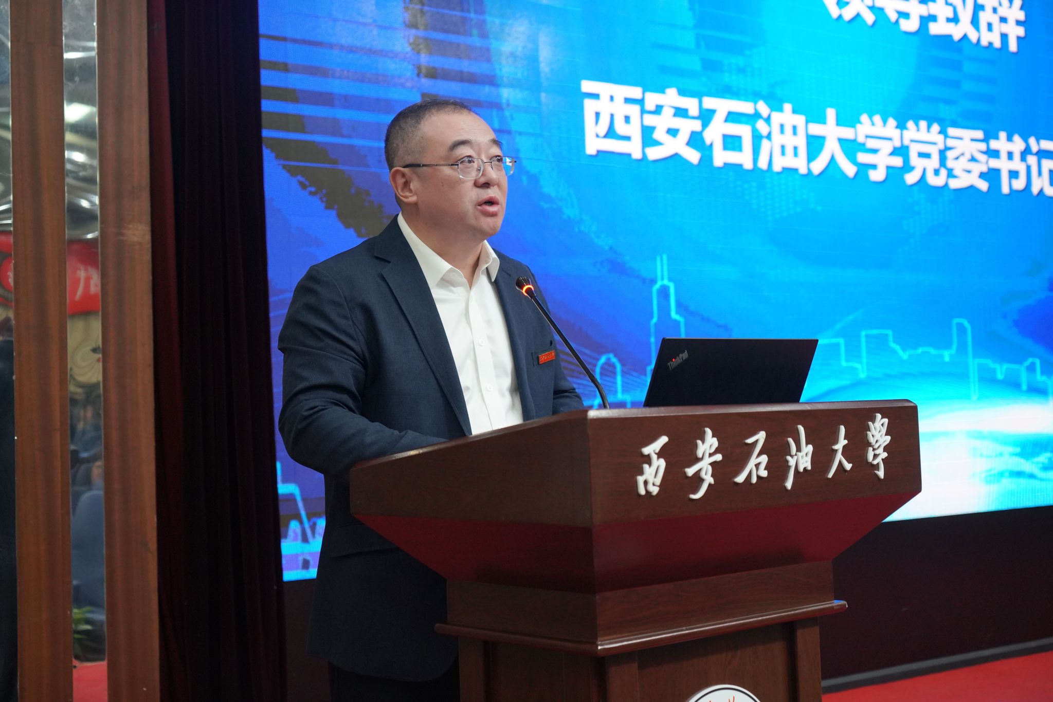 徐宗本院士、王根平副主任、省教育廳信息化處副處長劉賀英、長慶油田首席專家胡建國、寶雞石油機械有限責任公司副總經(jīng)理曹曉宇、中石油工程材料研究院有限公司副總經(jīng)理付安慶、寶石管業(yè)有限公司院長助理張峰,我校黨委書記常江共同為西安石油大學能源人工智能研究院揭牌。