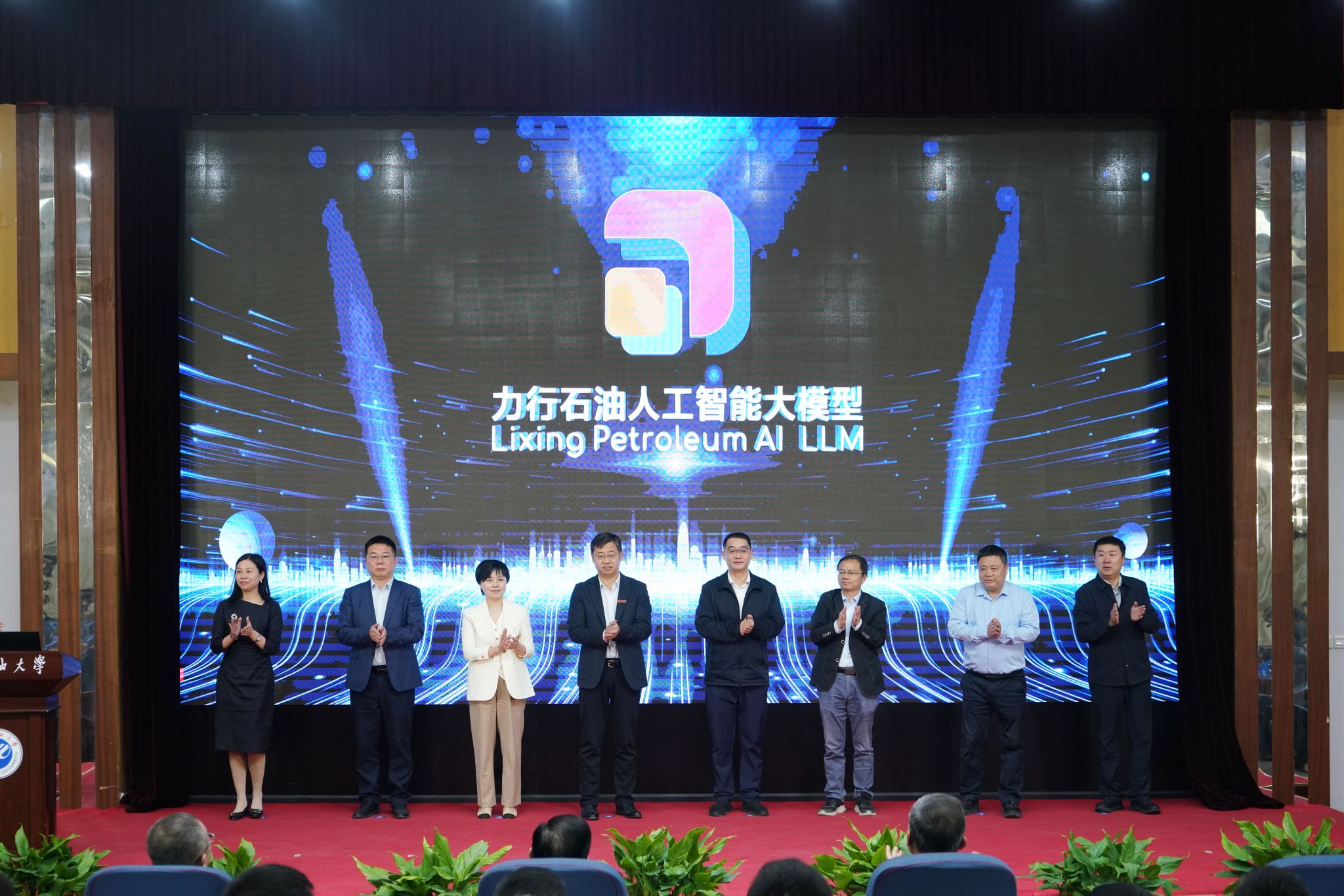 昆侖數(shù)智科技有限責任公司西北大區(qū)總經(jīng)理顏培金、西安交通大學軟件學院院長王偉、西北工業(yè)大學計算機學院院長尚學群、西北大學數(shù)學學院教授張海、國家超級計算西安中心運營主任袁玉峰、中國電信股份有限公司西安分公司副總經(jīng)理花楠、陜西聯(lián)通數(shù)字教育研究院院長趙靜、我校校長王進富共同點亮LOGO,正式發(fā)布“力行石油人工智能大模型”。