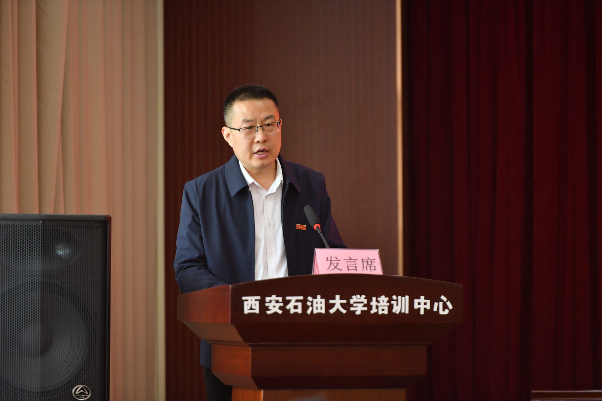 榆林長城理工學(xué)校副校長馬瑞代表校外教學(xué)點(diǎn)發(fā)言。他希望同學(xué)們能以理想為帆,以學(xué)習(xí)為槳,以實(shí)踐為舟,以堅(jiān)韌為錨,以“青春作伴好讀書”的熱情,以“不待揚(yáng)鞭自奮蹄”的自覺,在西安石油大學(xué)這片沃土上,書寫屬于繼教學(xué)子的華章。