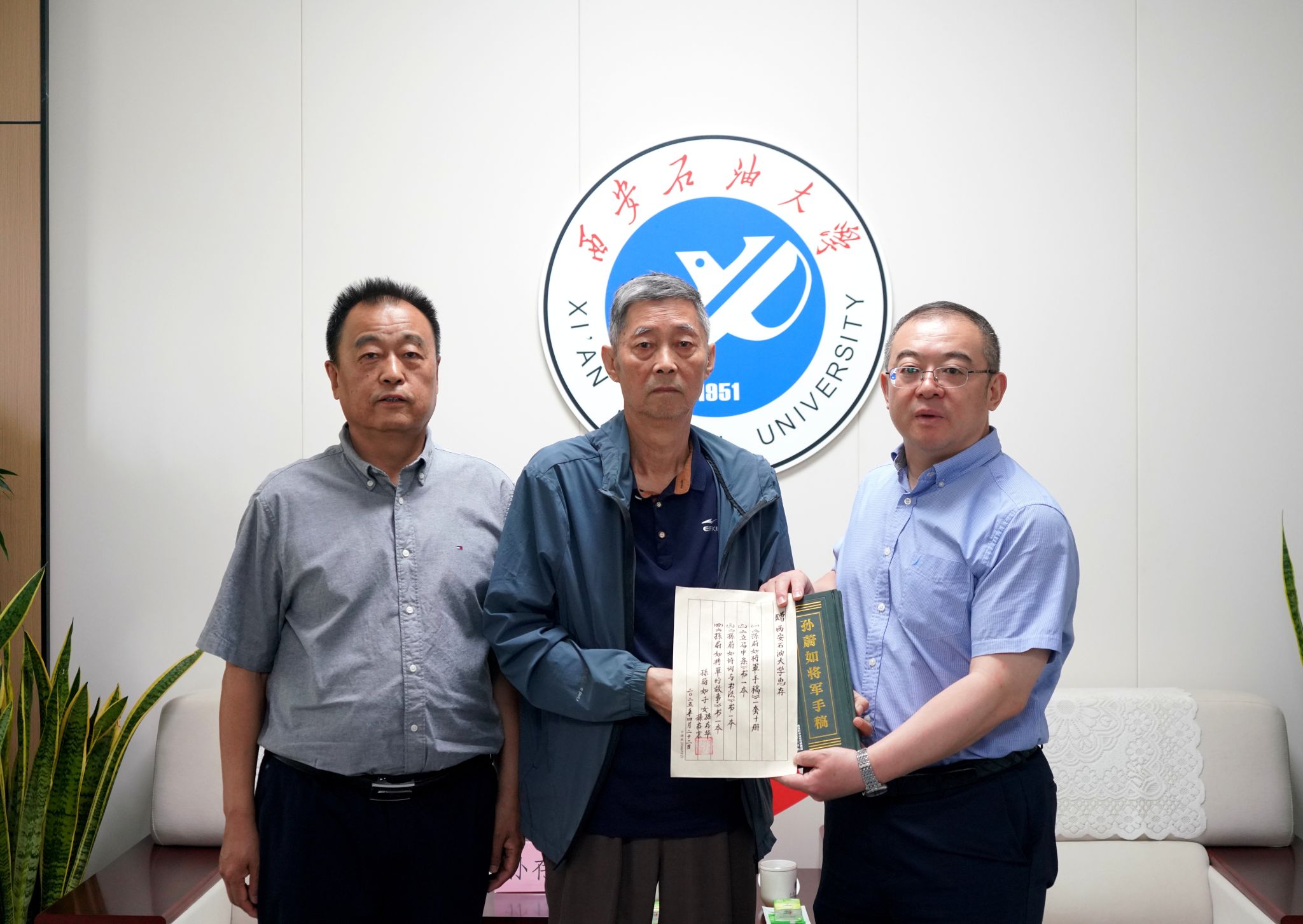 捐贈(zèng)儀式上,常江代表學(xué)校接收捐贈(zèng),并對(duì)孫存京先生表示了誠摯的感謝。常江指出,西安石油大學(xué)是一所流淌著紅色血液、具有厚重紅色基因的大學(xué),是由習(xí)仲勛等老一輩無產(chǎn)階級(jí)革命家親切關(guān)懷、倡導(dǎo)創(chuàng)立,最早建設(shè)、長期布局在我國西北地區(qū)的唯一一所以石油石化為特色的多科性普通高等學(xué)校。它的前身西北石油工業(yè)學(xué)校,由西北石油干部學(xué)校和陜西私立力行中學(xué)兩部分組成。陜西私立力行中學(xué)誕生于抗戰(zhàn)時(shí)期民族危亡之際,是杜斌丞先生倡導(dǎo)國立北平師范大學(xué)在陜同學(xué)會(huì),為解決京、津、滬等各地學(xué)生因受抗戰(zhàn)影響相繼來陜的求學(xué)問題,合力捐薪創(chuàng)辦的一所學(xué)校,在創(chuàng)辦時(shí)期就得到了孫蔚如將軍的鼎力相助。常江表示,習(xí)近平總書記寄語全黨,不管走多遠(yuǎn),都不能忘記我們來時(shí)的路。值此抗戰(zhàn)勝利80周年之際,孫將軍作為陜籍抗日名將和陜西人的驕傲,我們非常榮幸獲贈(zèng)他的手稿等珍貴書籍,這不僅豐富了學(xué)校檔案館館藏,更為學(xué)校研究陜軍抗戰(zhàn)歷史、開展愛國主義教育提供了最真實(shí)的資料和生動(dòng)教材。