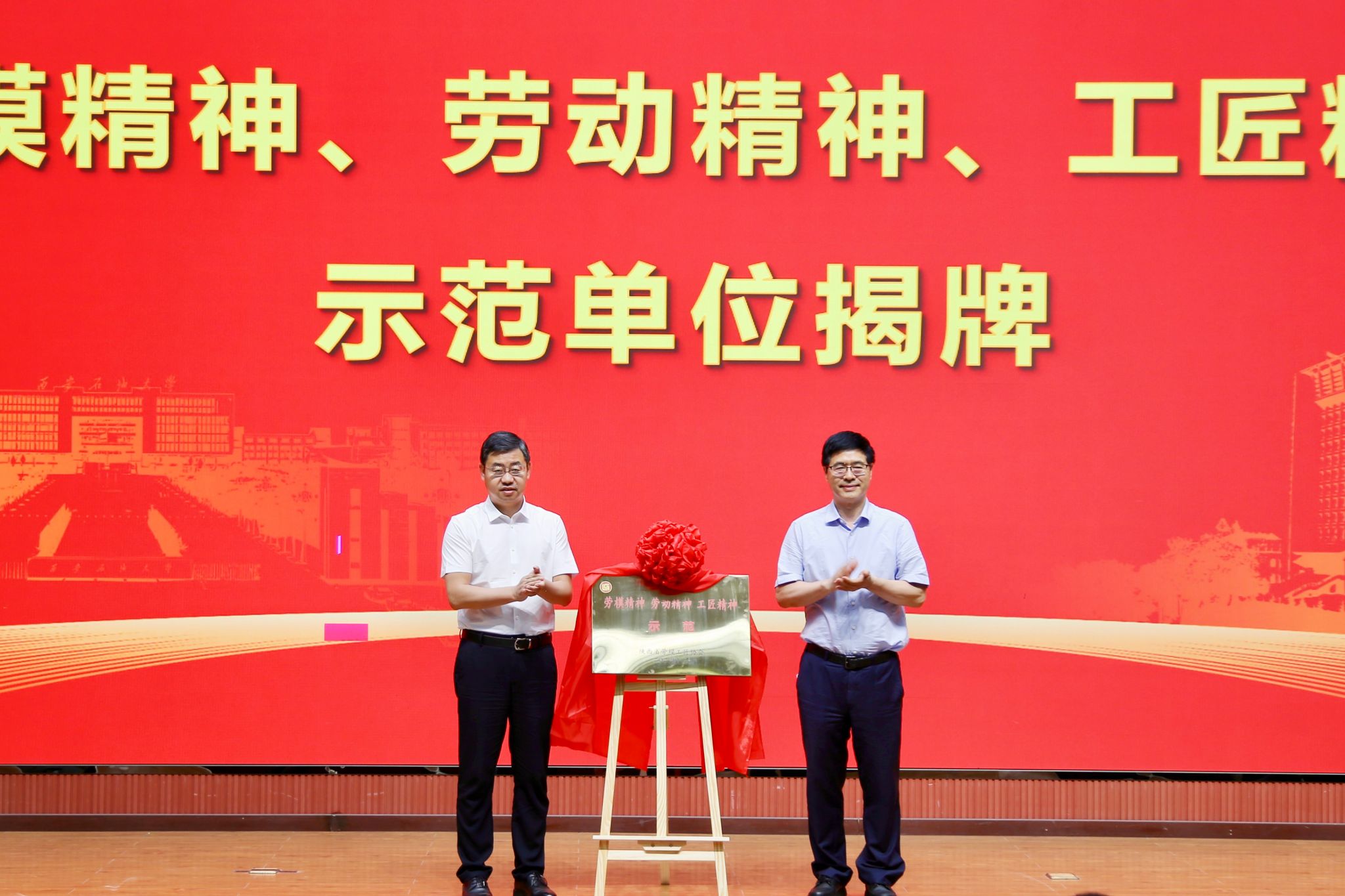 儀式上,張向陽宣讀了《關(guān)于授予“西安石油大學鐵人王進喜紀念館”“勞模精神、勞動精神、工匠精神”示范單位的通報》。