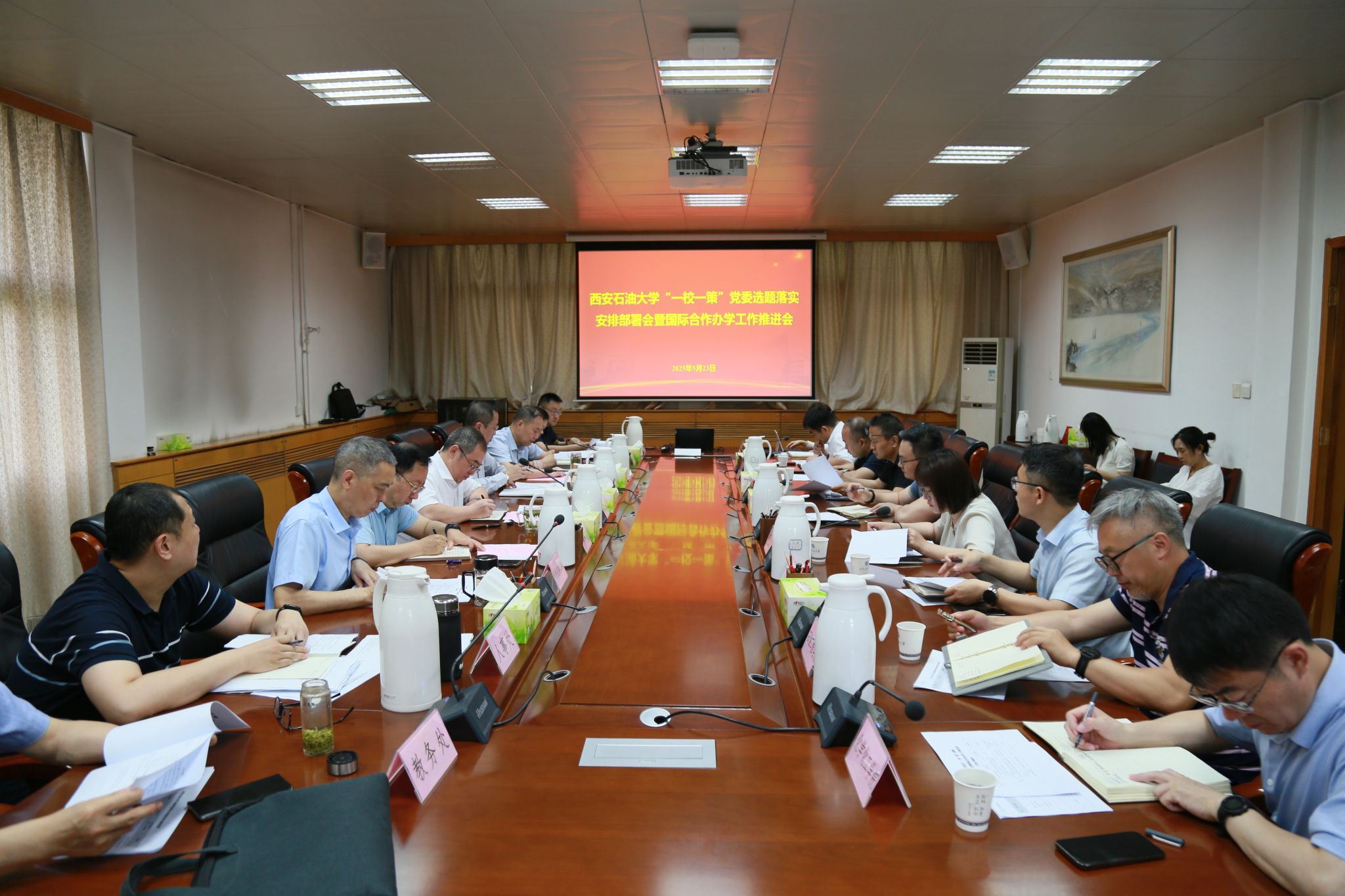5月23日上午,學(xué)校在雁塔校區(qū)辦公樓五樓會議室召開“一校一策”黨委選題落實(shí)安排部署會暨國際合作辦學(xué)工作推進(jìn)會。校黨委書記常江出席會議并講話,副校長張榮軍主持會議,學(xué)?!耙恍R徊摺惫ぷ黝I(lǐng)導(dǎo)小組成員單位負(fù)責(zé)人參加會議。