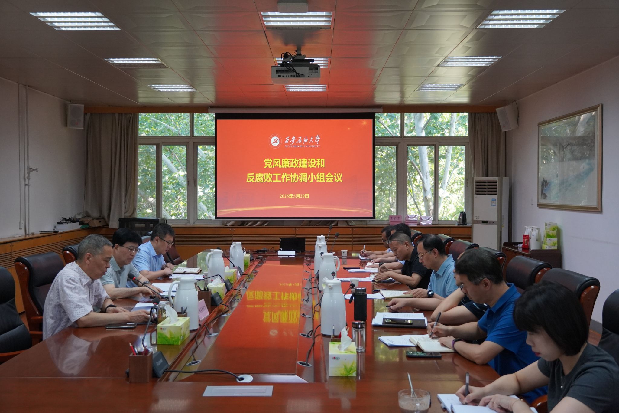 5月29日上午,學(xué)校黨風(fēng)廉政建設(shè)和反腐敗工作協(xié)調(diào)小組召開2025年第一次會(huì)議。校黨委副書記、紀(jì)委書記、監(jiān)察專員、協(xié)調(diào)小組組長(zhǎng)王輝強(qiáng)出席會(huì)議并講話。黨委辦公室(校長(zhǎng)辦公室)、紀(jì)檢監(jiān)察機(jī)構(gòu)、黨委巡察工作辦公室、組織部、人事處、財(cái)務(wù)處、審計(jì)處等部門負(fù)責(zé)人和紀(jì)檢監(jiān)察機(jī)構(gòu)有關(guān)人員參加會(huì)議。