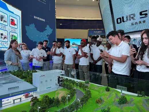 當(dāng)日下午,師生一行赴陜西汽車控股集團(tuán)有限公司(陜汽控股)開展企業(yè)參訪。在企業(yè)展廳,留學(xué)生們詳細(xì)了解了陜汽的發(fā)展歷程、企業(yè)文化及“德贏天下”的品牌理念。通過講解員介紹,大家認(rèn)識到陜汽不僅是中國重型商用車行業(yè)的領(lǐng)軍企業(yè),更在國防建設(shè)和社會公益等領(lǐng)域肩負(fù)重要責(zé)任。