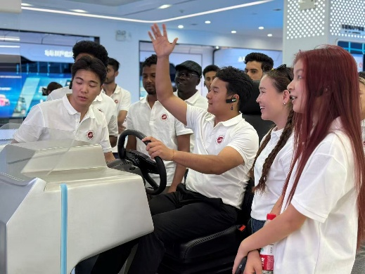 師生們深入生產(chǎn)車間,實(shí)地觀摩整車制造流程。全自動化焊接車間和總裝車間高度智能化的生產(chǎn)線令同學(xué)們贊嘆不已。特別是同一條生產(chǎn)線靈活生產(chǎn)多種車型的能力,充分展現(xiàn)了中國制造的技術(shù)實(shí)力與效率優(yōu)勢。留學(xué)生們表示,親眼目睹現(xiàn)代化工業(yè)體系的運(yùn)行模式,讓他們對中國制造業(yè)有了全新認(rèn)知。