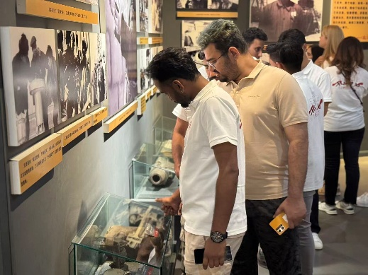 下午,師生們前往八路軍東渡黃河舊址和司馬遷祠參觀學(xué)習(xí)。在八路軍東渡黃河紀(jì)念展館,展柜中陳列的戰(zhàn)士們使用過的槍械、衣物、信件等物品,真實(shí)再現(xiàn)了那段艱苦卓絕的抗戰(zhàn)歲月。留學(xué)生們被中國共產(chǎn)黨領(lǐng)導(dǎo)下的人民軍隊(duì)英勇無畏、舍生忘死的精神深深震撼,表示此次參觀加深了他們對中國近現(xiàn)代史的理解,并對中國人民面對外敵入侵時展現(xiàn)的堅(jiān)強(qiáng)意志和不屈精神深感敬佩。