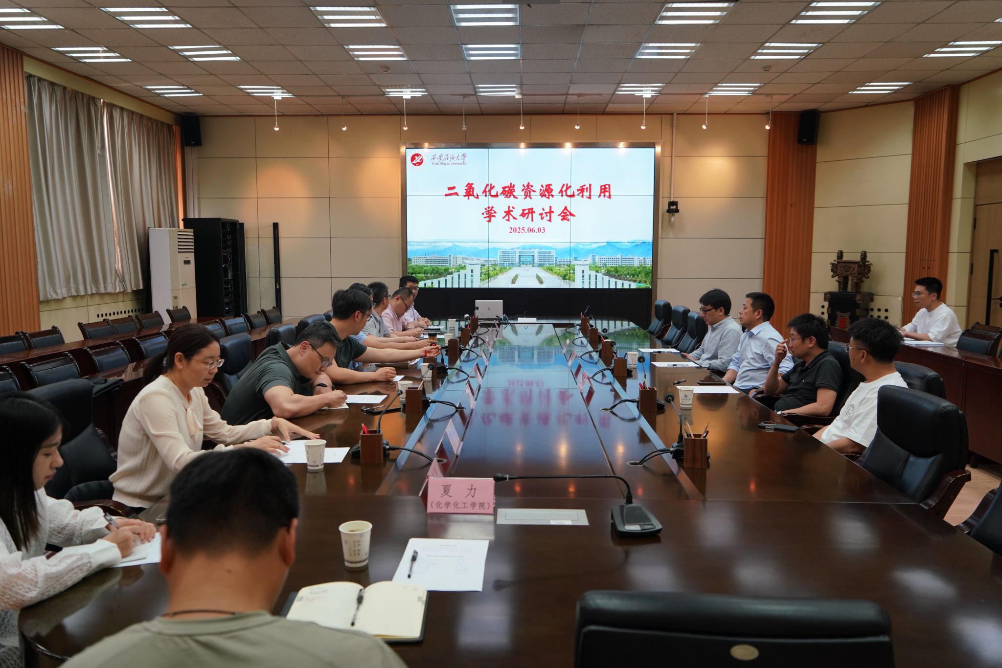 本次研討座談會邀請了中國科學院地球環(huán)境研究所粉塵與環(huán)境研究室主任黃宇教授、陜西師范大學化學化工學院國家杰青曹睿教授以及新西蘭坎特伯雷大學化學化工學院尹航教授等,圍繞CO?催化轉化、捕集封存等領域分享前沿成果,并針對我校學科特色,就碳學科建設、研究方向及人才培養(yǎng)等提出了指導建議。