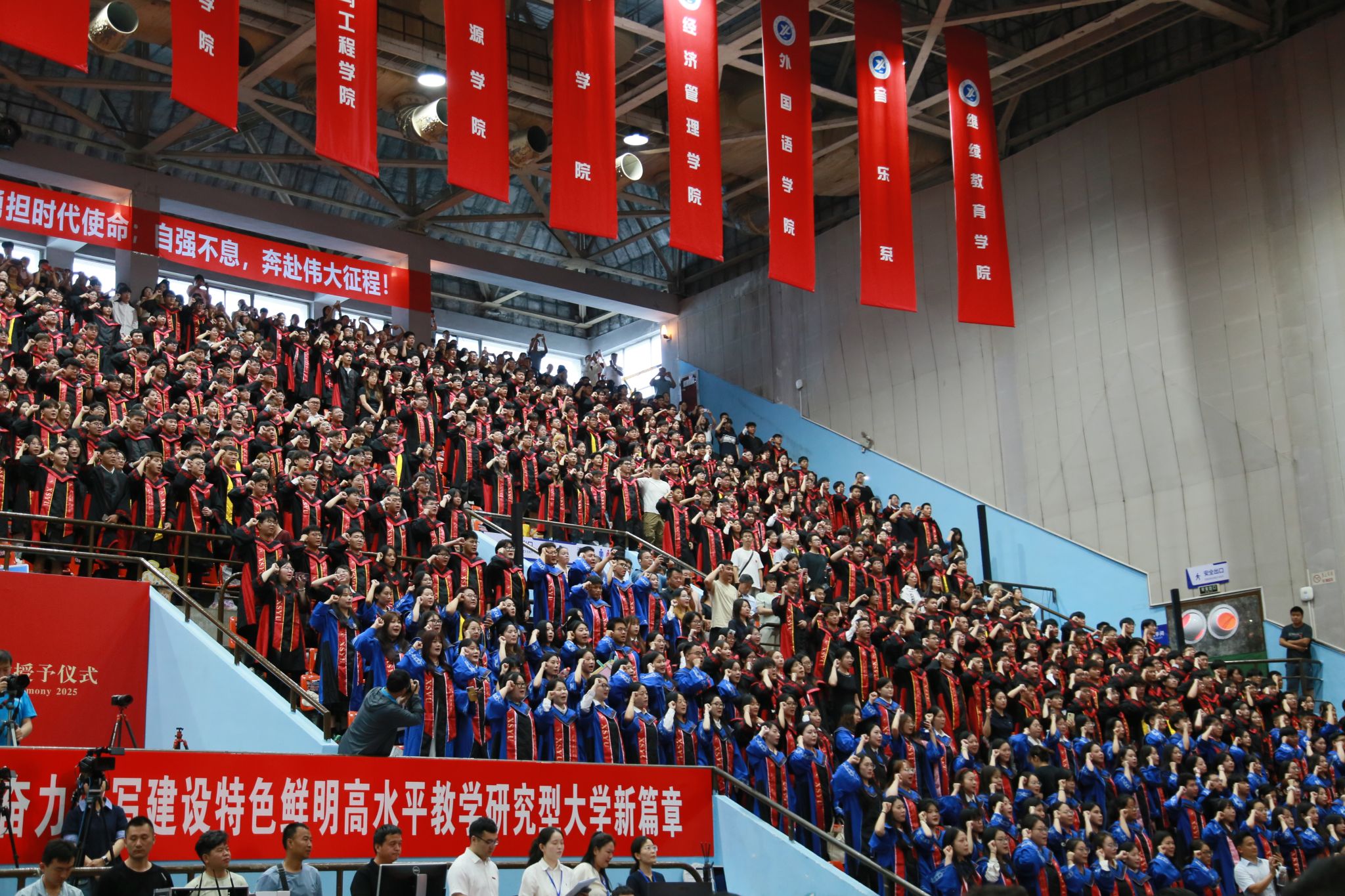 校長王進(jìn)富為2025屆畢業(yè)生致辭。他代表學(xué)校向2025屆6317名圓滿完成學(xué)業(yè)、取得學(xué)位的優(yōu)秀學(xué)子表達(dá)祝賀與歡送,代表十八萬校友向磨劍數(shù)載、即將啟航新程的西石大學(xué)子表達(dá)祝福與歡迎。王進(jìn)富與畢業(yè)生共同回顧了學(xué)校近年來在學(xué)科建設(shè)、人才培養(yǎng)、科學(xué)研究、校園文化、服務(wù)保障等方面取得的突破與變化,介紹了學(xué)校未來的發(fā)展規(guī)劃,分享了何靜校友從香山晨跑到世界之巔、用18年將登山探索淬煉成超越自我的攀登之路:以探索開辟疆域,以迭代鍛造能力,以超越突破極限。他以《探索、迭代、超越》為題,囑托畢業(yè)生:一是探索,以求知之姿丈量世界。探索是離開舒適、突破畏懼、勇闖未知的贊歌,是從“已知圈”向“未知域”的跨越。探索無界,以終身成長丈量生命的維度;探索深地:用科技之光喚醒沉睡的能源密碼。二是迭代,以進(jìn)化之力重塑自我。迭代是在探索基礎(chǔ)上的持續(xù)優(yōu)化,是對抗精神熵增、實現(xiàn)螺旋上升的必然路徑。迭代人生,以進(jìn)化思維構(gòu)建終身成長的飛輪;迭代突破,用自主科技解構(gòu)石油工業(yè)的底層代碼。三是超越,以破界之志定義未來。超越是突破既有邊界的質(zhì)變,是從“小我”到“大我”、從行業(yè)到文明的維度躍升。超越自我,在不確定時代鍛造確定的人生坐標(biāo);超越傳統(tǒng),以低碳科技重構(gòu)能源行業(yè)的未來基因。王進(jìn)富深情寄語廣大畢業(yè)生站在AI與人類文明交匯的關(guān)鍵路口,如金剛石般進(jìn)化成長,在能源技術(shù)攻堅的“地心熔爐”里,既能承受地下200℃的高壓錘煉,也能折射出智慧能源的璀璨光譜,探索未知,迭代自我,超越極限。