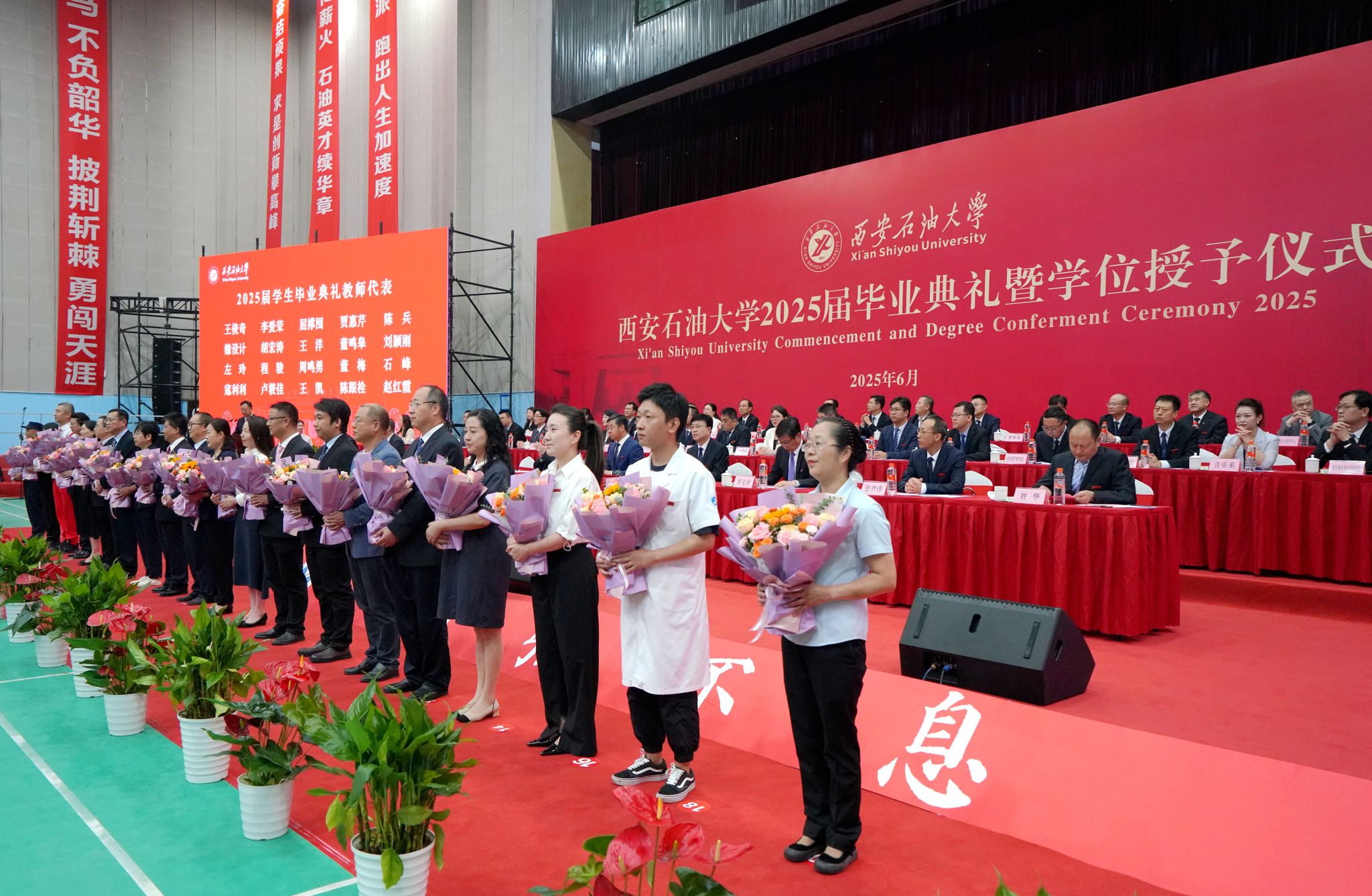 6月19日上午,西安石油大學(xué)2025屆畢業(yè)典禮暨學(xué)位授予儀式在雁塔校區(qū)體育館舉行。校黨政領(lǐng)導(dǎo)常江、王進(jìn)富、張木、王輝強(qiáng)、程永清、蘇文甫、張榮軍、趙健出席典禮儀式。相關(guān)職能部門、各院(系)負(fù)責(zé)人,教師代表,校友代表,2025屆畢業(yè)生及家長3000余人來到現(xiàn)場,共同見證這一重要時刻。學(xué)位授予儀式由校黨委委員、副校長張君濤主持,畢業(yè)典禮由校黨委委員、副校長種宇宏主持。