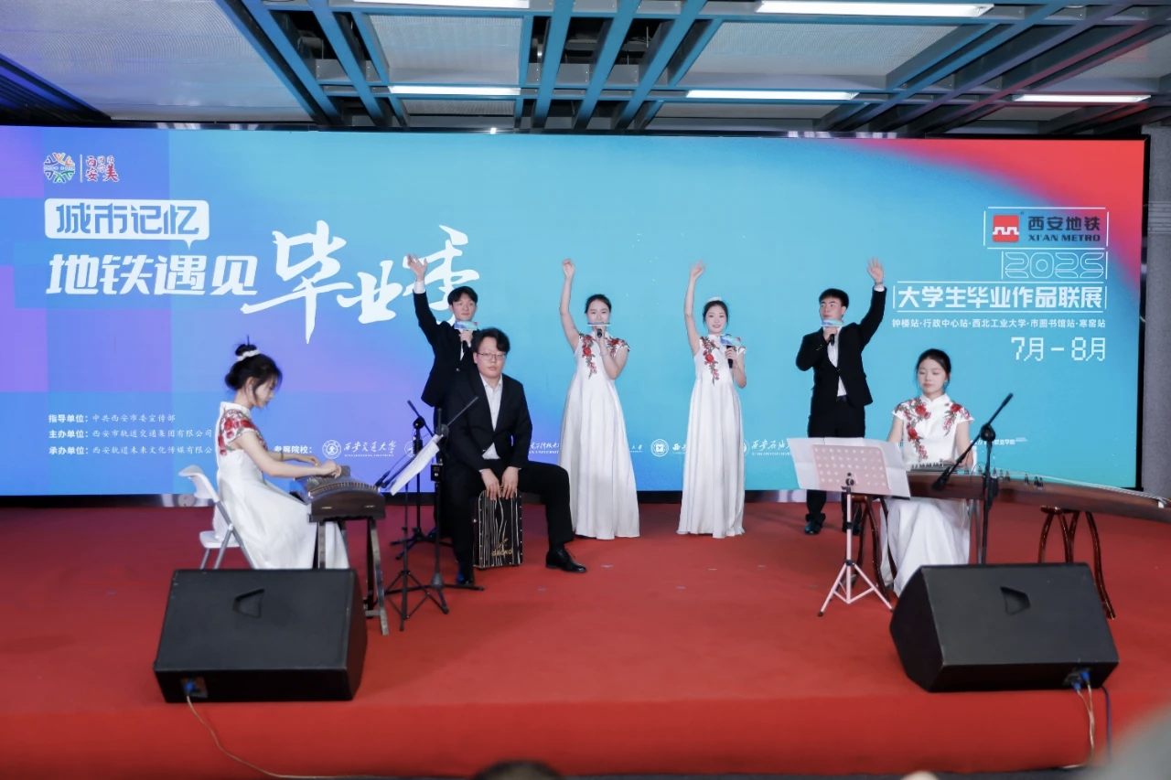 6月28日,由中共西安市委宣傳部指導(dǎo),西安市軌道交通集團(tuán)主辦“城市記憶·地鐵遇見畢業(yè)季”西安地鐵2025大學(xué)生畢業(yè)作品聯(lián)展活動在地鐵鐘樓站拉開帷幕。來自我校和西安交通大學(xué)等9所高校,涵蓋繪畫、文創(chuàng)、通信技術(shù)等240余件畢業(yè)作品(設(shè)計)在地鐵5大展區(qū)重磅“上新”。