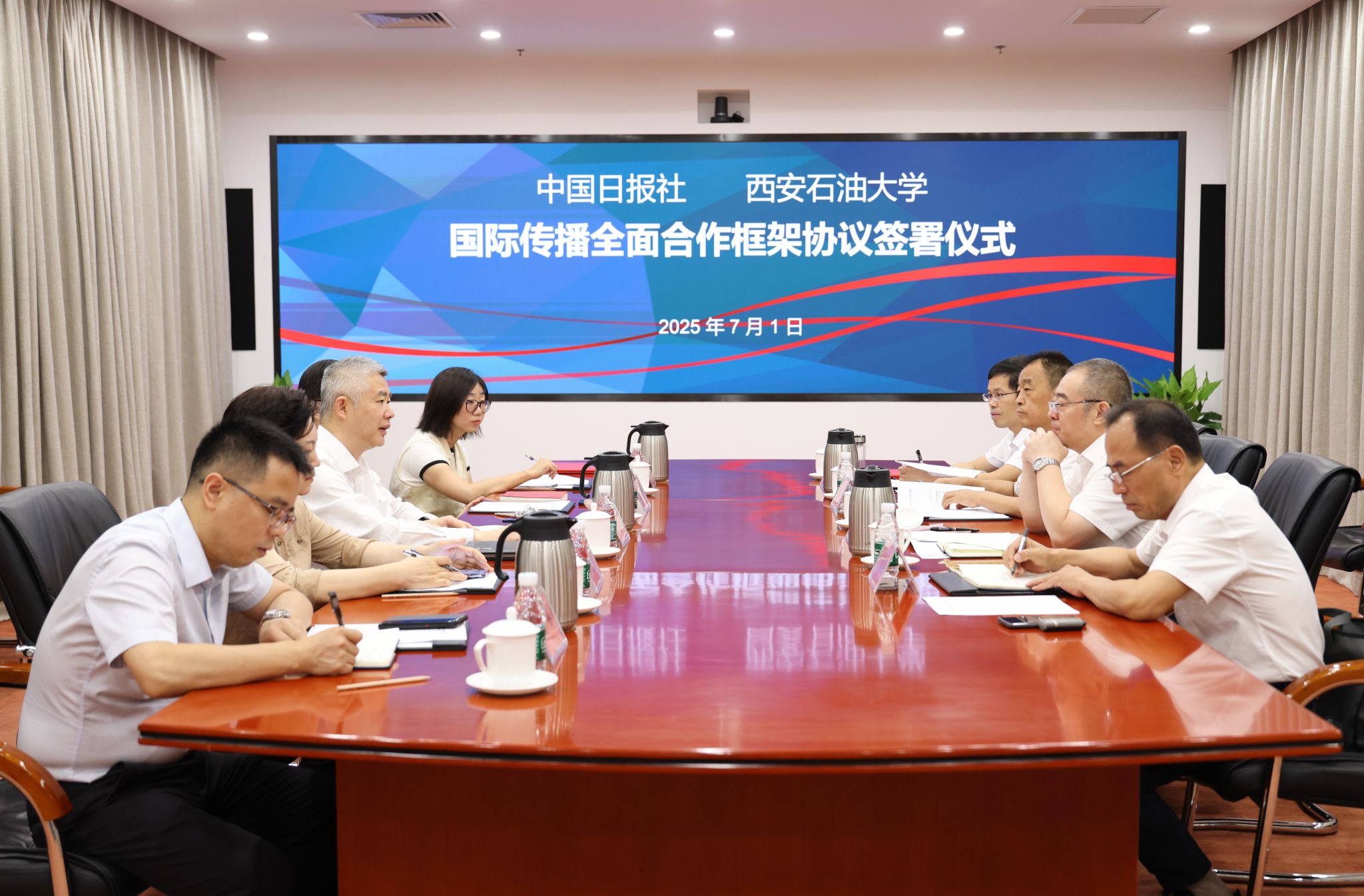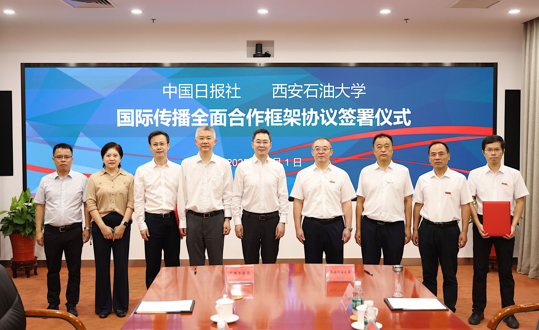 為深入貫徹落實習近平總書記關于國際傳播工作的重要論述,加快構建學校多渠道、立體式對外傳播格局,著力向國際社會講好西石大故事和中國能源故事,7月1日,中國日報社與西安石油大學在北京簽署國際傳播全面合作框架協議。中國日報社社長兼總編輯曲瑩璞、西安石油大學黨委書記常江共同見證簽約,西安石油大學黨委副書記程永清、中國日報社事業(yè)發(fā)展部主任龔錚錚代表雙方簽署協議。簽約儀式由中國日報社副總編輯孫尚武主持。