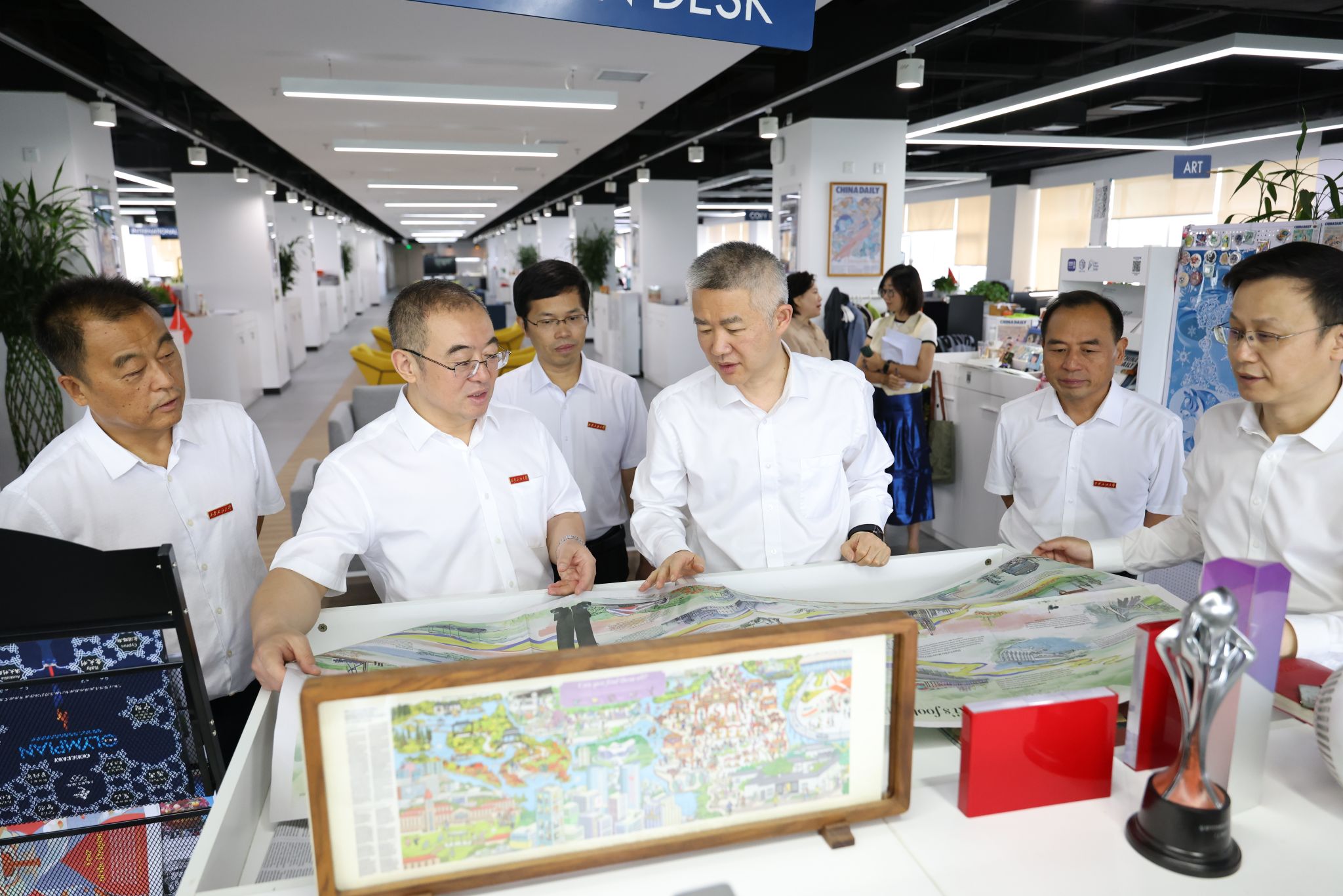 座談儀式后,雙方就加強國際傳播能力建設座談交流,常江一行還參觀了中國日報社采編大廳及報社成就展。