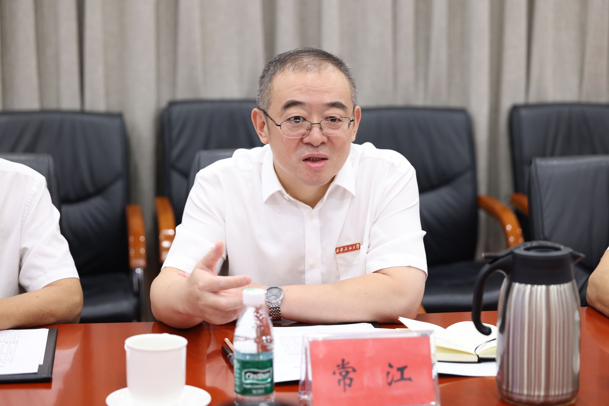 常江回顧了雙方近期合作進展,感謝中國日報為學校提升國際影響力給予的大力支持。他表示,西安石油大學因油而建、為油而興、與油共進,是習仲勛等老一輩無產階級革命家親切關懷、倡導創(chuàng)立,最早建設、長期布局在我國西北地區(qū)的唯一一所以石油石化為特色的高等學校,具有深厚的紅色基因。學校辦學特色鮮明,尤其是在國際化辦學優(yōu)勢突出,成果豐碩,土庫曼斯坦魯班工坊、中文工坊以及烏茲別克斯坦海外分校等都是學校落實“開放融合”行動,實施開放辦學的有益探索。中國日報作為中央主要媒體和國際傳播主力軍,是中外交流的重要窗口。學校期望與中國日報深化合作,探索具有“中國話語、石油特色”的對外傳播路徑,在國際傳播、人才培養(yǎng)、產學研融合等領域取得更大合作進展。