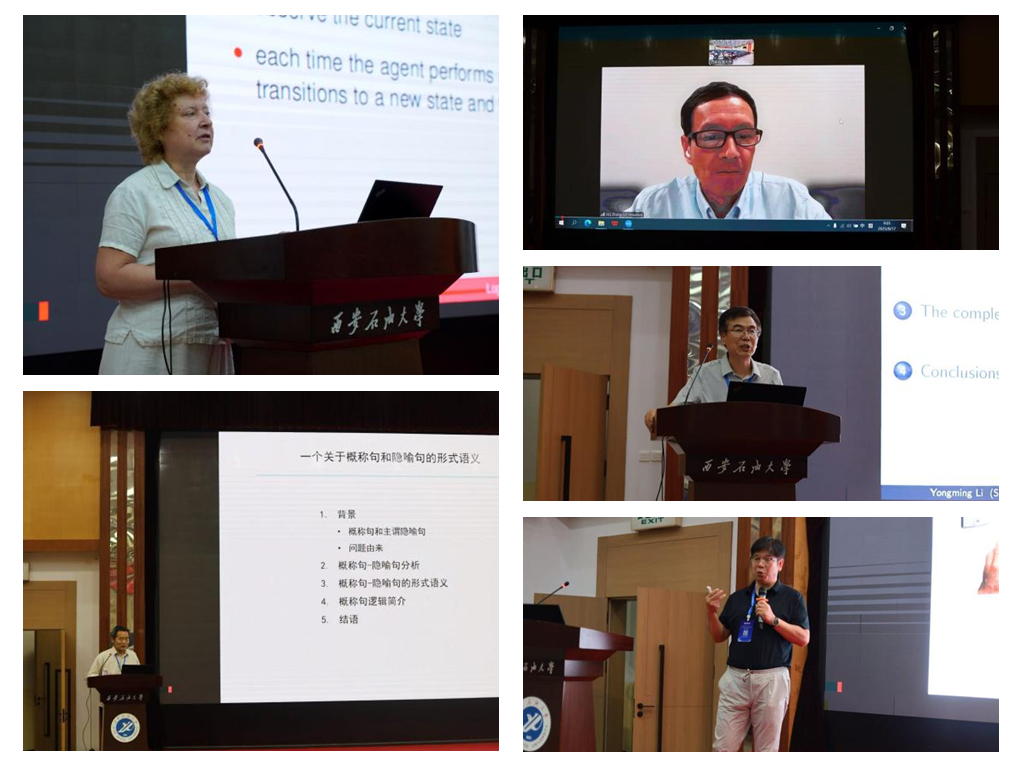 在主旨報(bào)告環(huán)節(jié),荷蘭與佛蘭德斯開放大學(xué)的Natasha Alechina教授、山西大學(xué)周北海教授、德克薩斯大學(xué)休斯頓分校張國(guó)強(qiáng)教授、陜西師范大學(xué)李永明教授、北京大學(xué)詹乃軍教授分別作了《強(qiáng)化學(xué)習(xí)的邏輯》《泛型句與隱喻句的形式語(yǔ)義》《集成邏輯:時(shí)空推理的統(tǒng)一框架》《可能性時(shí)序邏輯:可判定性與完全公理化》《將Hoare邏輯擴(kuò)展至混合系統(tǒng)》的精彩報(bào)告,并與參會(huì)代表進(jìn)行了熱烈的討論。