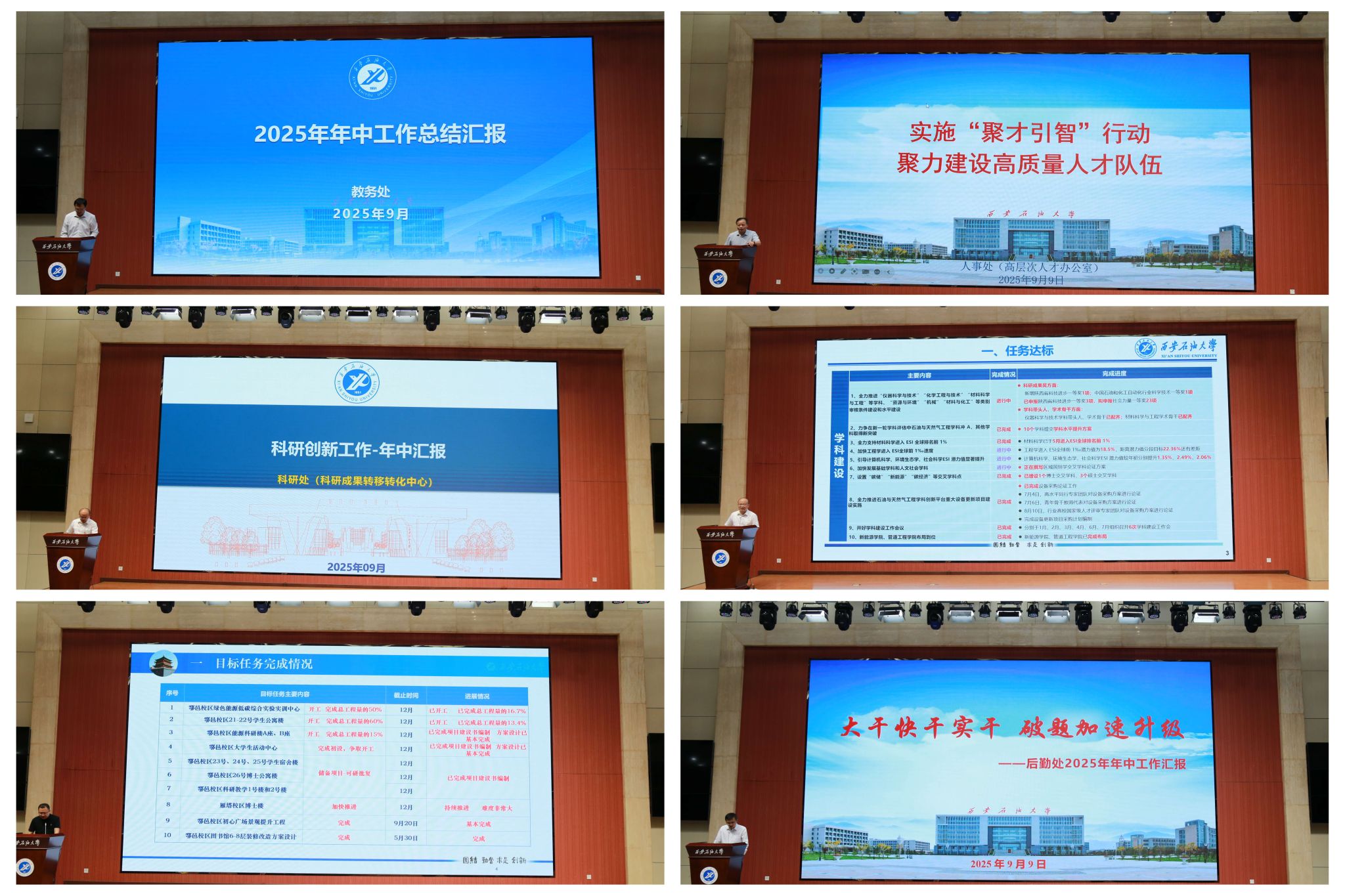 9月9日,學(xué)校在鄠邑校區(qū)弘石學(xué)術(shù)報(bào)告廳召開(kāi)2025年年中工作會(huì)議,全面總結(jié)上半年學(xué)校各項(xiàng)事業(yè)發(fā)展成效,深入分析當(dāng)前面臨的挑戰(zhàn),系統(tǒng)部署當(dāng)前重點(diǎn)工作。學(xué)校黨政領(lǐng)導(dǎo)王進(jìn)富、張木、程永清、蘇文甫、張榮軍、張君濤、張驍勇、趙健、種宇宏出席會(huì)議。校黨委委員、紀(jì)委委員、學(xué)術(shù)委員會(huì)委員、工會(huì)委員會(huì)委員,二、三級(jí)教授,各院(系)教研室(系)主任、實(shí)驗(yàn)中心主任,全體處科級(jí)干部參加會(huì)議。會(huì)議由校黨委副書(shū)記張木主持。