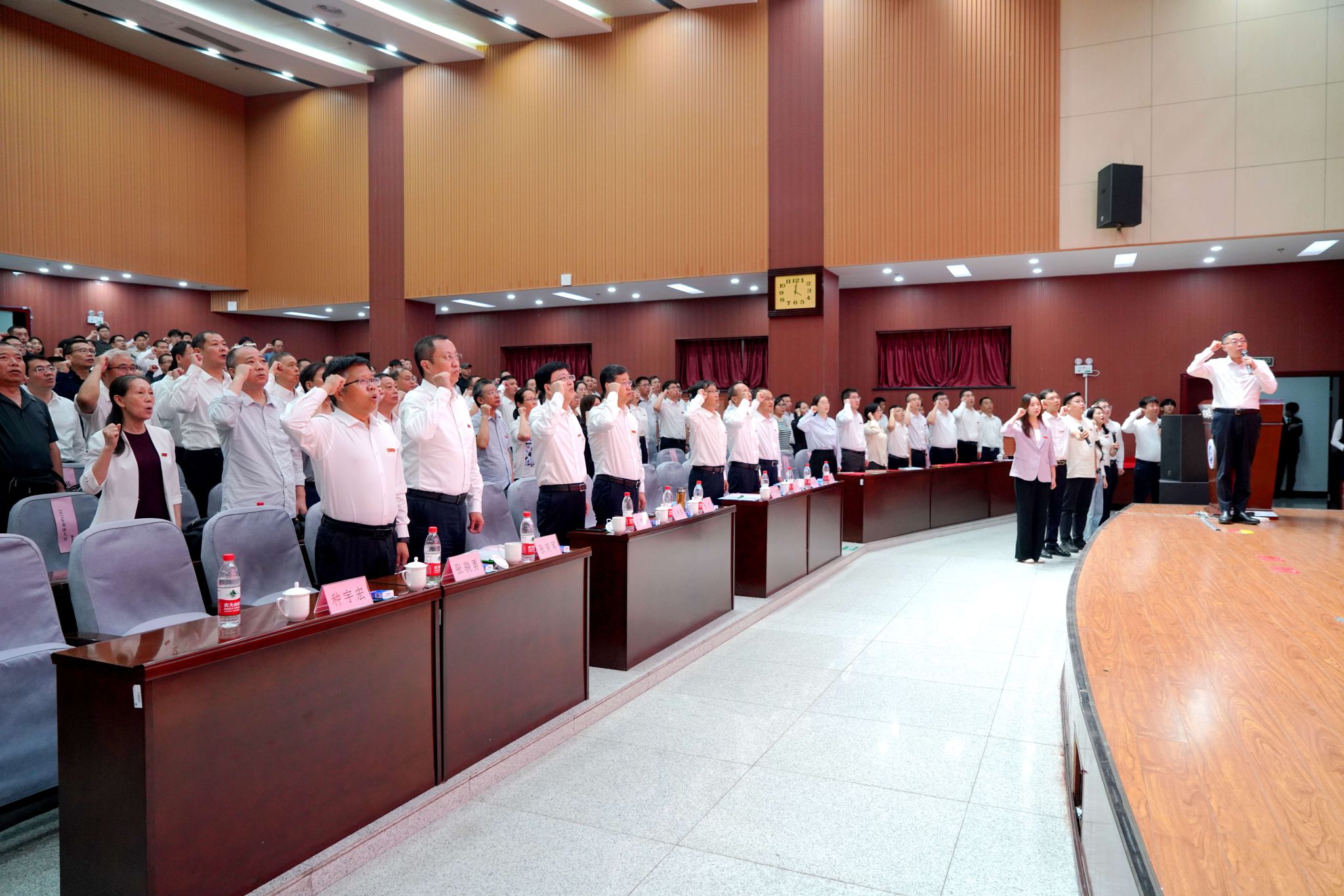 在教師宣誓儀式上,經濟管理學院吳勛教授領誓,全體參會人員起立,莊嚴宣誓,表達了為黨和人民的教育事業(yè)而努力奮斗的決心,彰顯了教師職業(yè)的責任感與使命感。