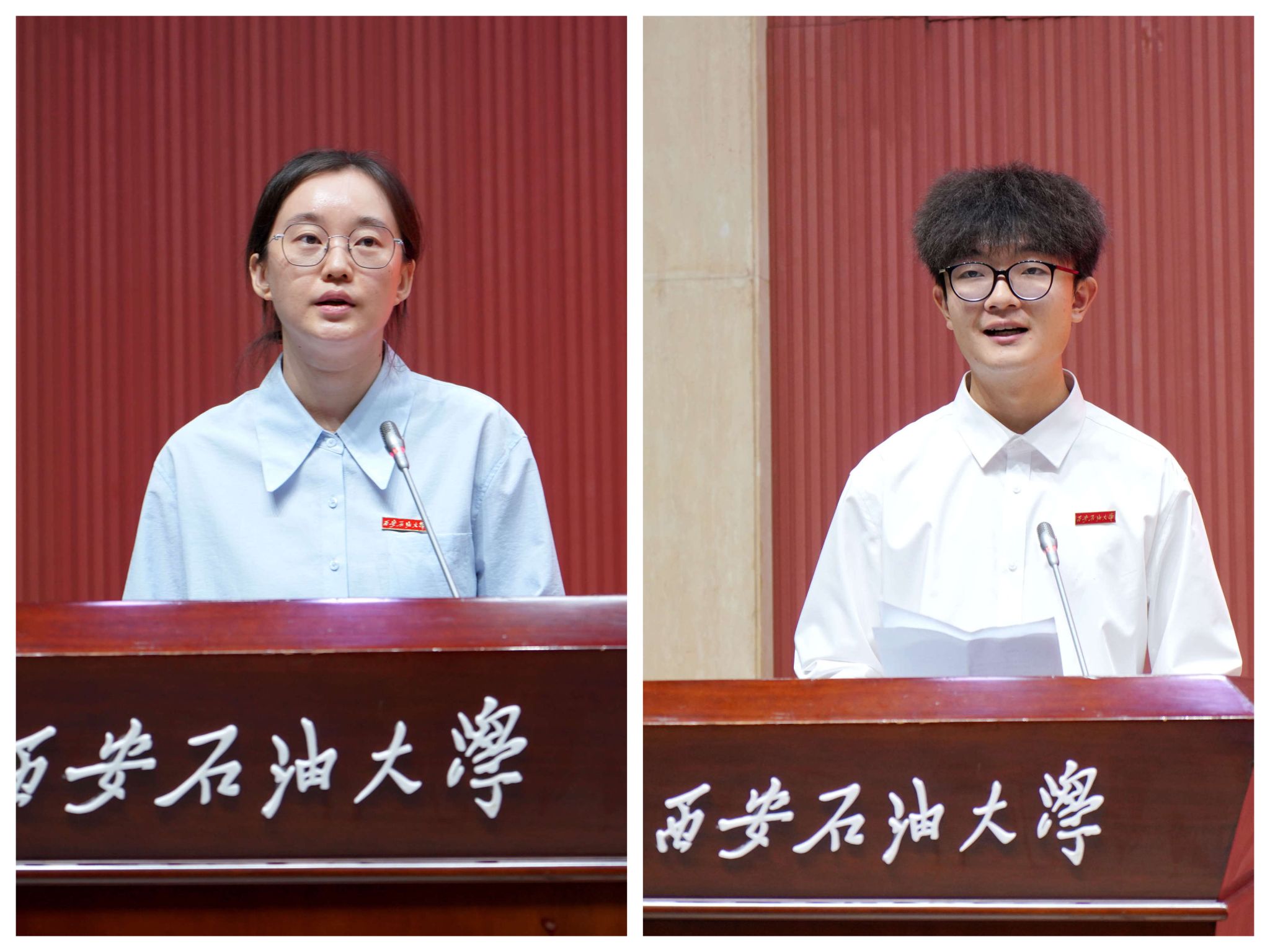 教師代表、陜西省青年拔尖人才、石油工程學院劉婭菲老師作交流發(fā)言,學生代表、地球科學與工程學院杜佳偉同學獻詞。
