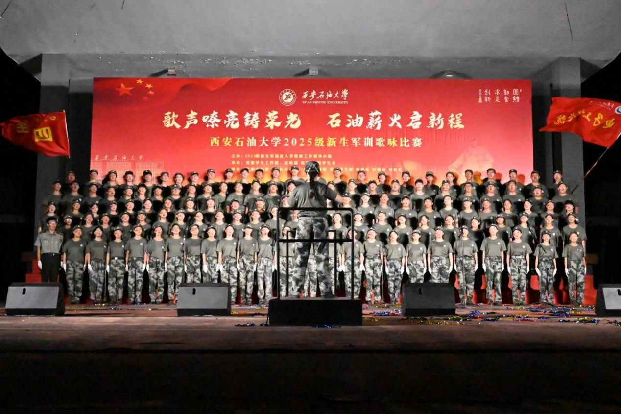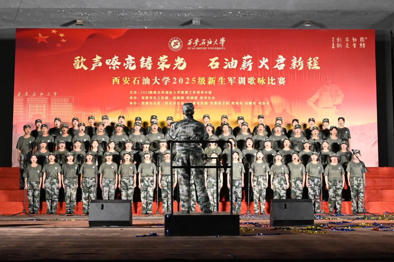 歌聲嘹亮鑄榮光,石油薪火啟新程。軍訓(xùn)歌詠比賽既是我校軍訓(xùn)工作的重要組成部分,也是深化新生思政教育、展現(xiàn)青春風(fēng)貌的關(guān)鍵窗口。軍訓(xùn)仍在如火如荼地進(jìn)行中,愿2025級(jí)新生淬煉初心,挺膺擔(dān)當(dāng),以歌聲彰顯志向、以行動(dòng)踐行承諾,為學(xué)校高水平教學(xué)研究型大學(xué)建設(shè)貢獻(xiàn)青春智慧和力量!