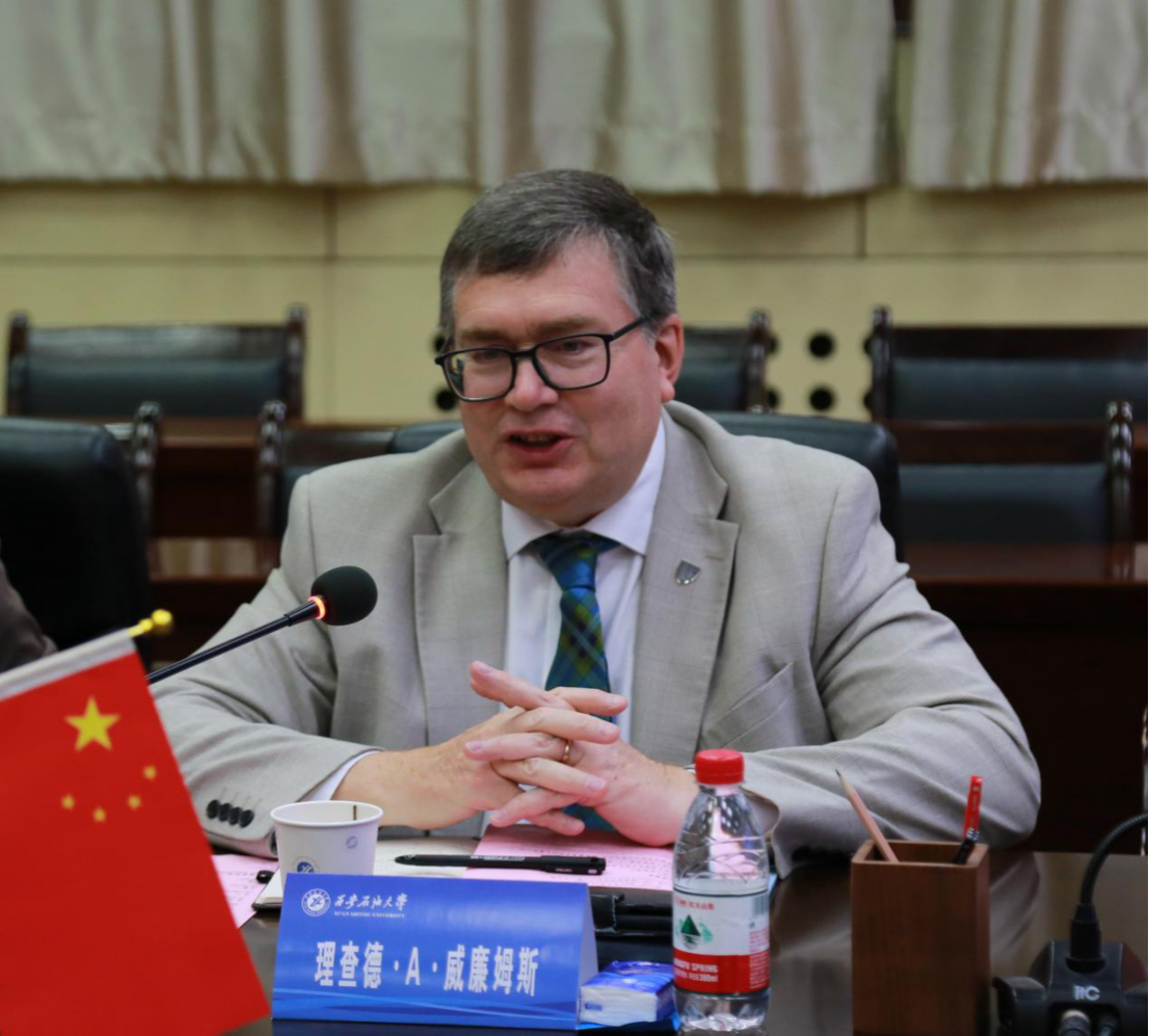 理查德?A?威廉姆斯對我校的熱情接待表示感謝,并簡要介紹了赫瑞-瓦特大學的學科特色、國際校區(qū)布局及全球合作成果。他表示,推進跨文化教育合作、培育應對全球挑戰(zhàn)的復合型人才是兩校的共同追求,赫瑞-瓦特大學高度重視與學校的合作。他強調,愿與學校共同細化3+1項目執(zhí)行方案,推動項目早日落成,并期待雙方在能源、人工智能、基礎設施建設等領域加強跨學科科研合作,擴大師生互訪規(guī)模等方面開展實質性合作。