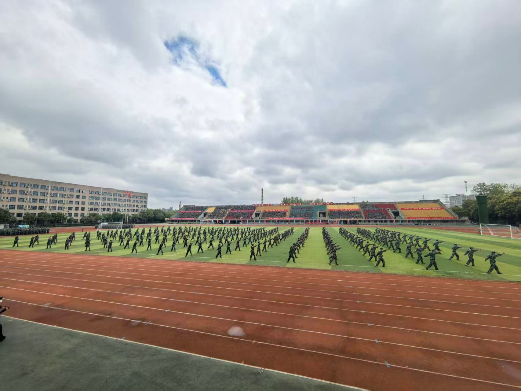 軍訓(xùn)總結(jié)表彰大會(huì)在全體師生齊唱校歌《輝煌明天》的豪邁旋律中圓滿落幕。