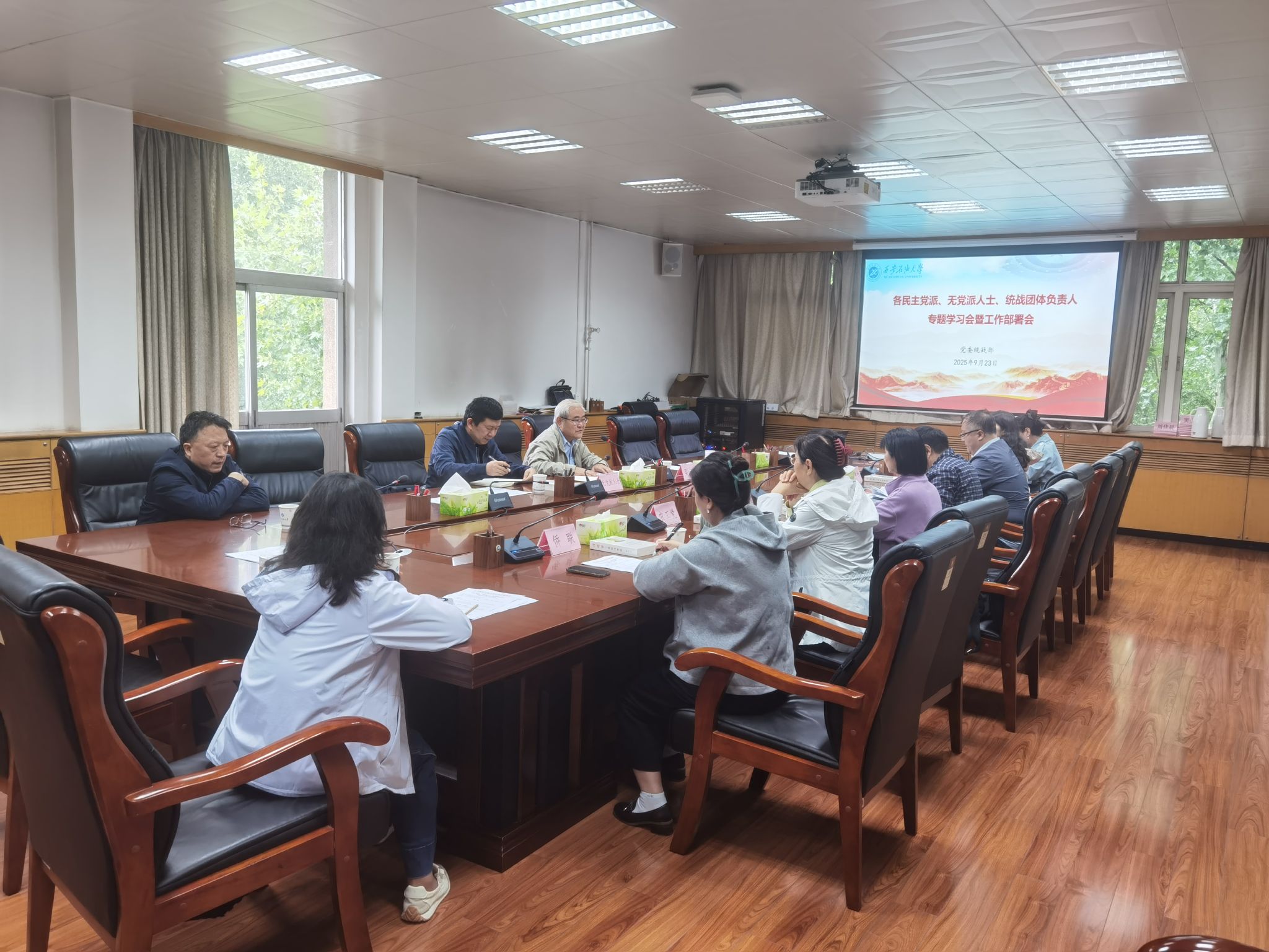 為進一步加強政治理論學習,持續(xù)推進各民主黨派、無黨派人士“學規(guī)定、強作風、樹形象”主題教育,安排部署本學期重點工作,學校于9月23日上午在雁塔校區(qū)行政樓五樓會議室召開各民主黨派、無黨派人士、統(tǒng)戰(zhàn)團體負責人專題學習會暨工作部署會,各民主黨派支部委員,無黨派人士負責人,僑聯(lián)、留聯(lián)會、知聯(lián)會負責人參加。會議由黨委統(tǒng)戰(zhàn)部部長吳復雷主持。