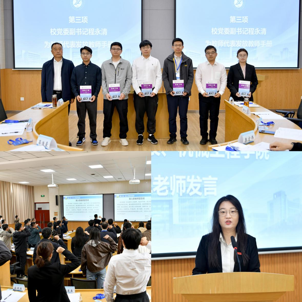 9月24日上午,培訓(xùn)班在明德校區(qū)明德樓110教室舉辦開班式,校黨委副書記程永清出席開班式。開班式上,程永清為教師代表發(fā)放教師手冊(cè)。教師工作部部長(zhǎng)武曉朦詳細(xì)介紹了部門情況和本次研修課程安排情況,并做紀(jì)律要求。石油工程學(xué)院新入職教師常元昊領(lǐng)誓,全體教師宣誓。新入職教師代表、機(jī)械工程學(xué)院田靜卓作表態(tài)發(fā)言。