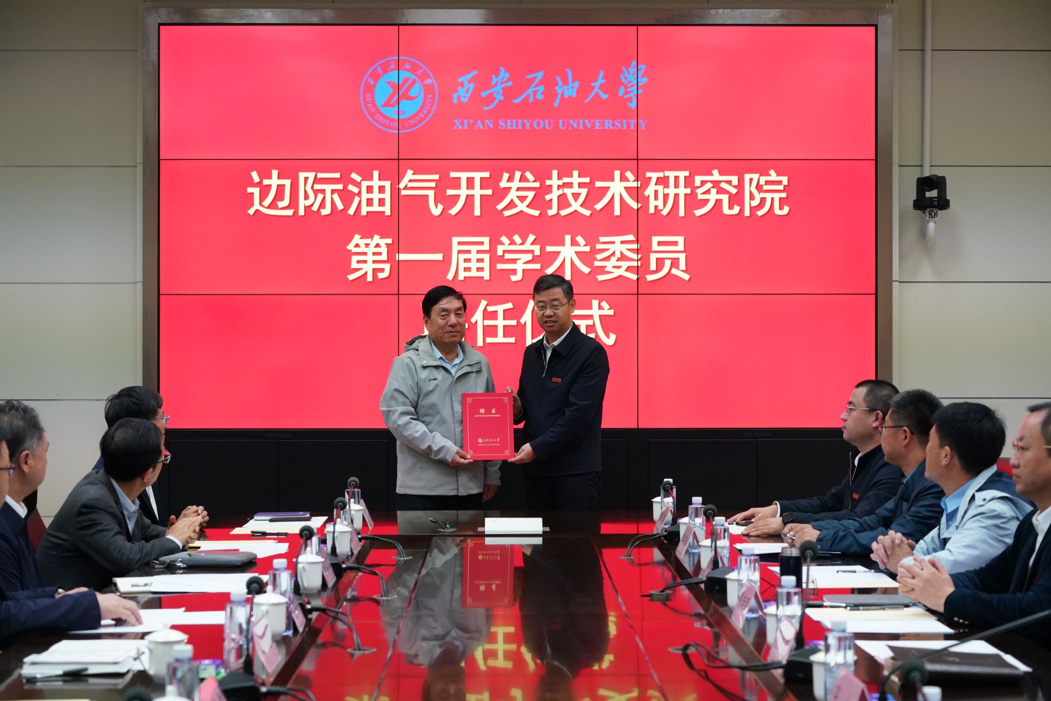 在隨后舉行的聘任儀式上,張木宣讀了《西安石油大學關(guān)于聘任第一屆邊際油氣開發(fā)技術(shù)研究院學術(shù)委員會委員的決定》,王進富為李陽院士頒發(fā)了學術(shù)委員會主任委員聘書,李陽院士依次為各副主任委員、委員及秘書長頒發(fā)聘書?,F(xiàn)場掌聲雷動,氣氛熱烈。