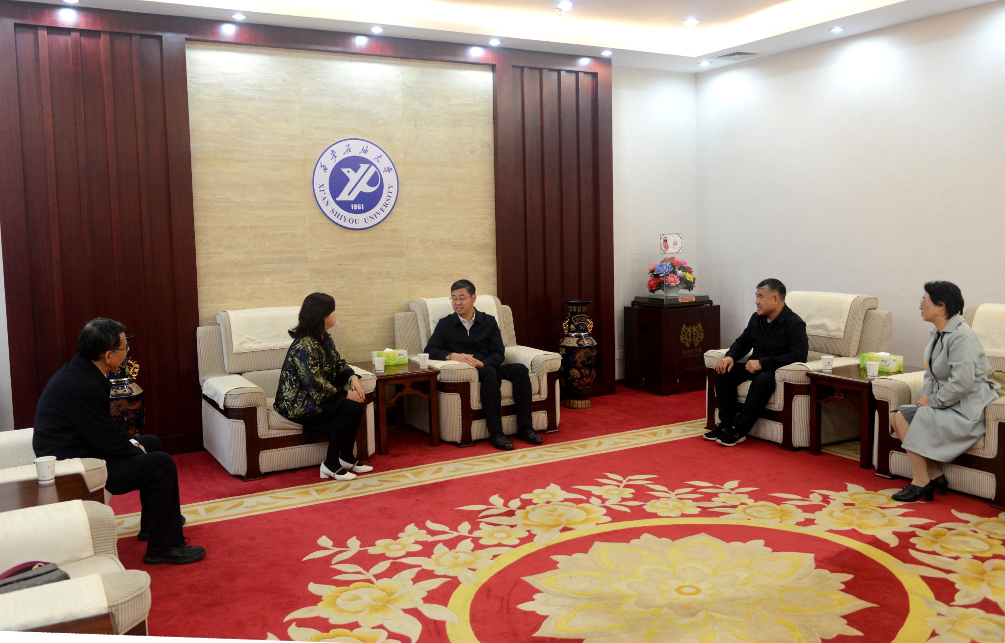 會前,校長王進富、校黨委副書記張木在鄠邑校區(qū)貴賓室熱情接見了徐捷穎校友。王進富代表學(xué)校對徐捷穎校友榮歸母校表示熱烈歡迎,對其心系母校發(fā)展、慷慨捐資反哺的善舉致以崇高敬意與誠摯感謝。王進富強調(diào),學(xué)校將充分發(fā)揮石油特色學(xué)科與人才培養(yǎng)優(yōu)勢,為校友企業(yè)發(fā)展提供精準(zhǔn)的智力支撐與優(yōu)質(zhì)的人才服務(wù),通過深化校企協(xié)同合作,實現(xiàn)資源互通、優(yōu)勢互補,攜手推動雙方在各自領(lǐng)域?qū)崿F(xiàn)更高質(zhì)量發(fā)展。