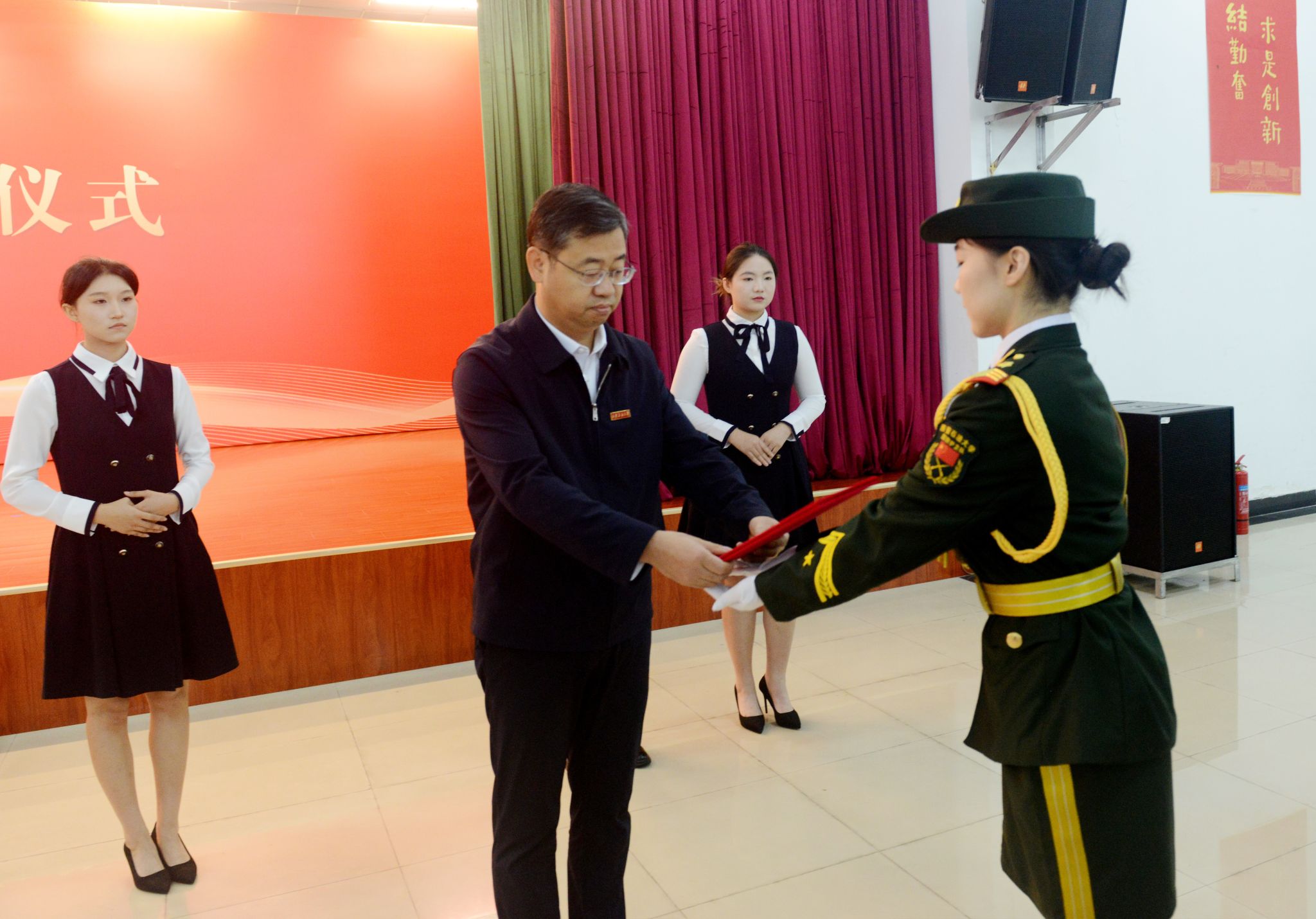 副校長(zhǎng)種宇宏主持迎接天安門(mén)廣場(chǎng)國(guó)旗儀式。