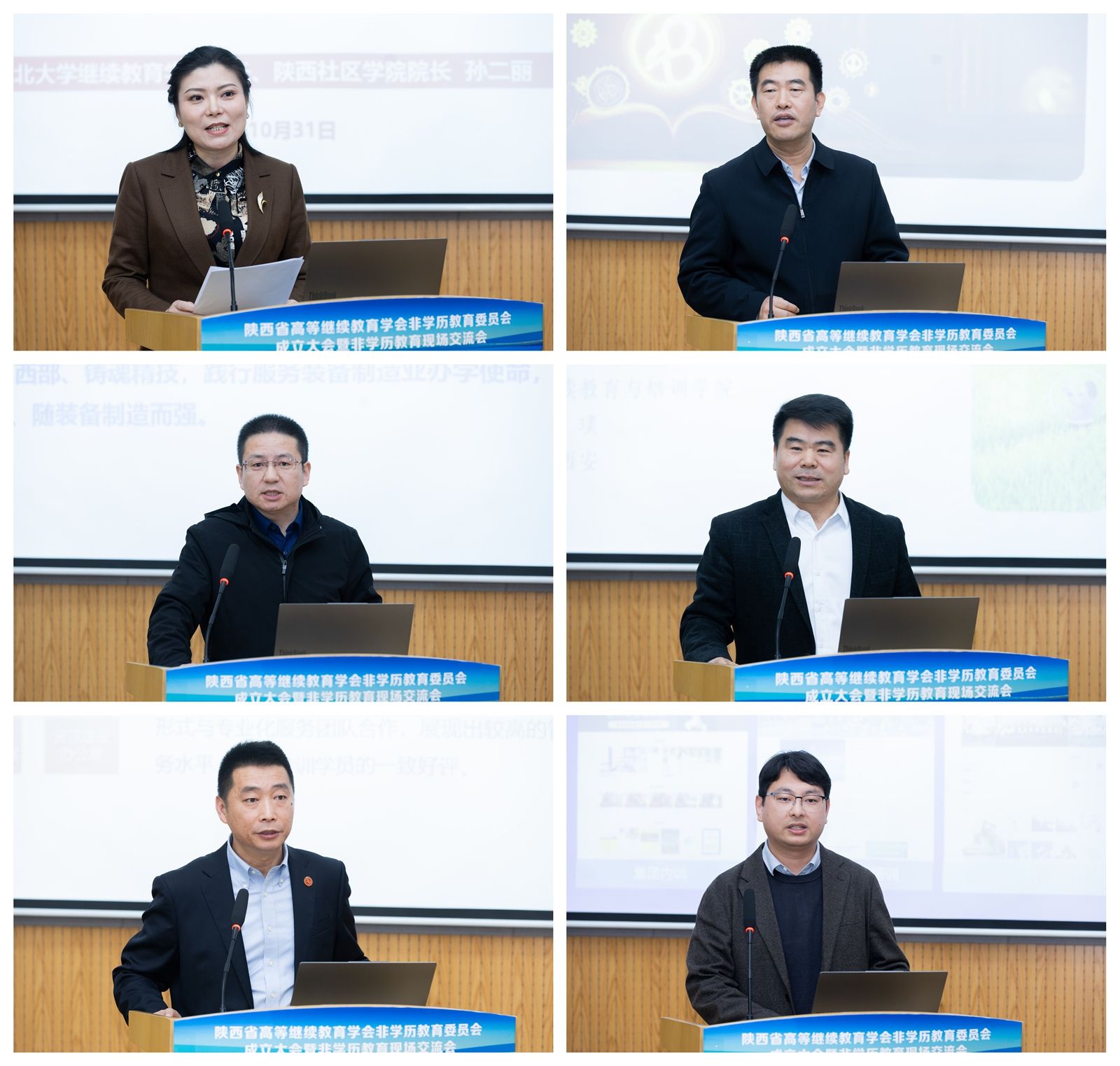 在研討交流環(huán)節(jié),西北大學(xué)繼續(xù)教育學(xué)院院長(zhǎng)孫二麗,陜西理工大學(xué)繼續(xù)教育學(xué)院院長(zhǎng)李強(qiáng),陜西工業(yè)職業(yè)技術(shù)大學(xué)繼續(xù)教育與培訓(xùn)學(xué)院院長(zhǎng)閆軍,陜西農(nóng)林職業(yè)技術(shù)大學(xué)繼續(xù)教育與培訓(xùn)學(xué)院、村干部(農(nóng)民)發(fā)展學(xué)院院長(zhǎng)黃璞,西安石油大學(xué)繼續(xù)教育學(xué)院培訓(xùn)辦公室主任、培訓(xùn)中心培訓(xùn)總監(jiān)于宏坤,超星泛雅集團(tuán)繼續(xù)教育事業(yè)部副總經(jīng)理肖鐳分別做了交流發(fā)言,分享了“理論+實(shí)踐”“線上+線下”“校內(nèi)+校外”等多元非學(xué)歷教育模式,為全省高校非學(xué)歷教育工作提供了借鑒,凝聚了共識(shí)。